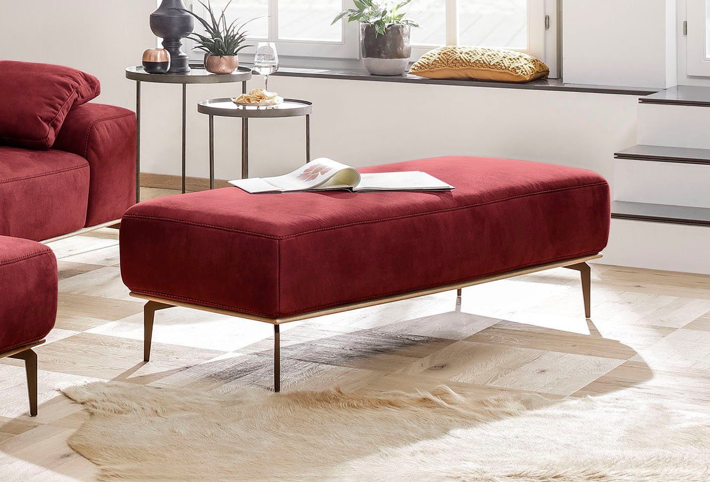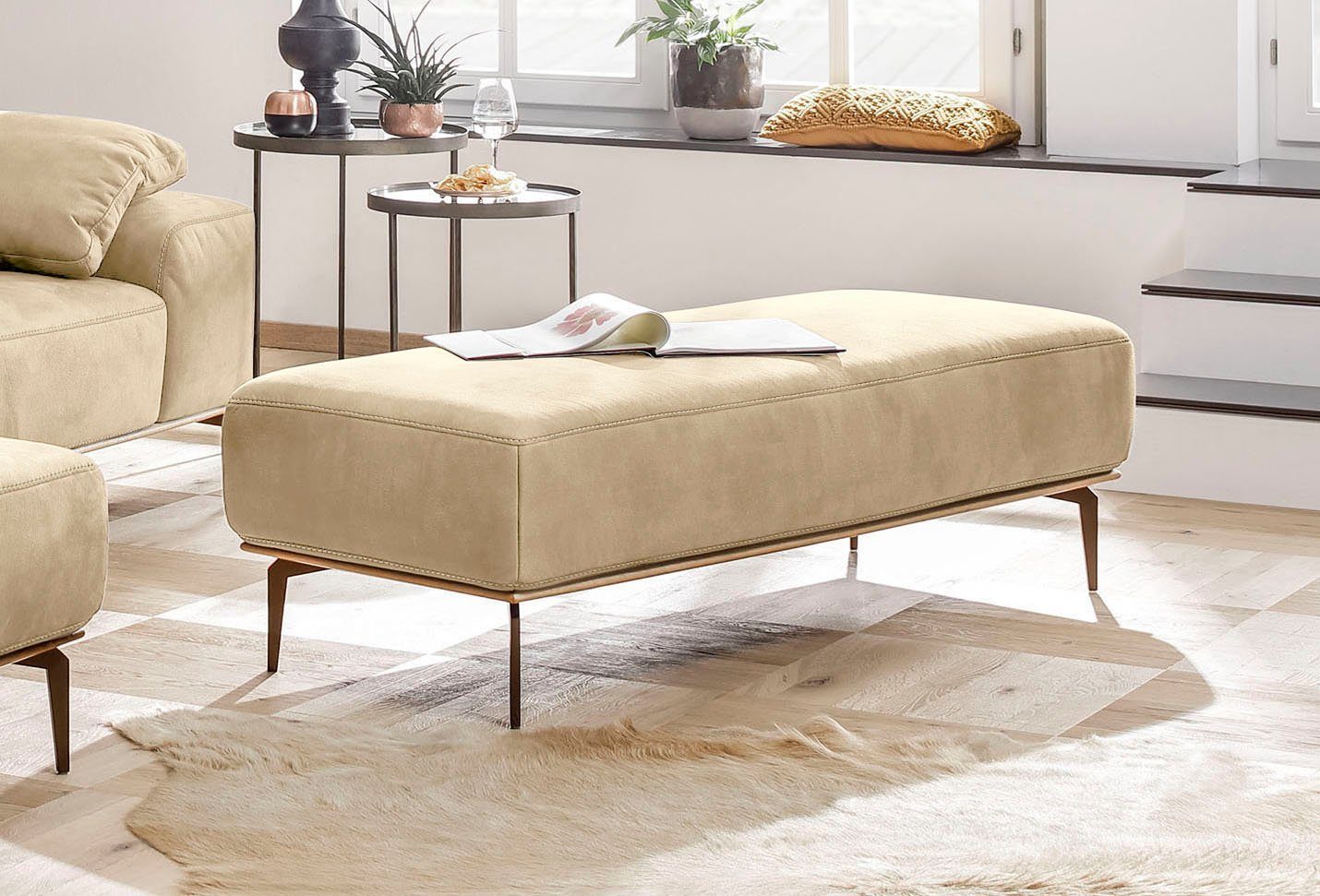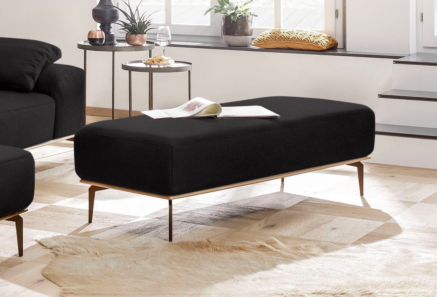 W.SCHILLIG Polsterhocker run, mit Holzsockel, Füße in Bronze pulverbeschichtet, Breite 150 cm