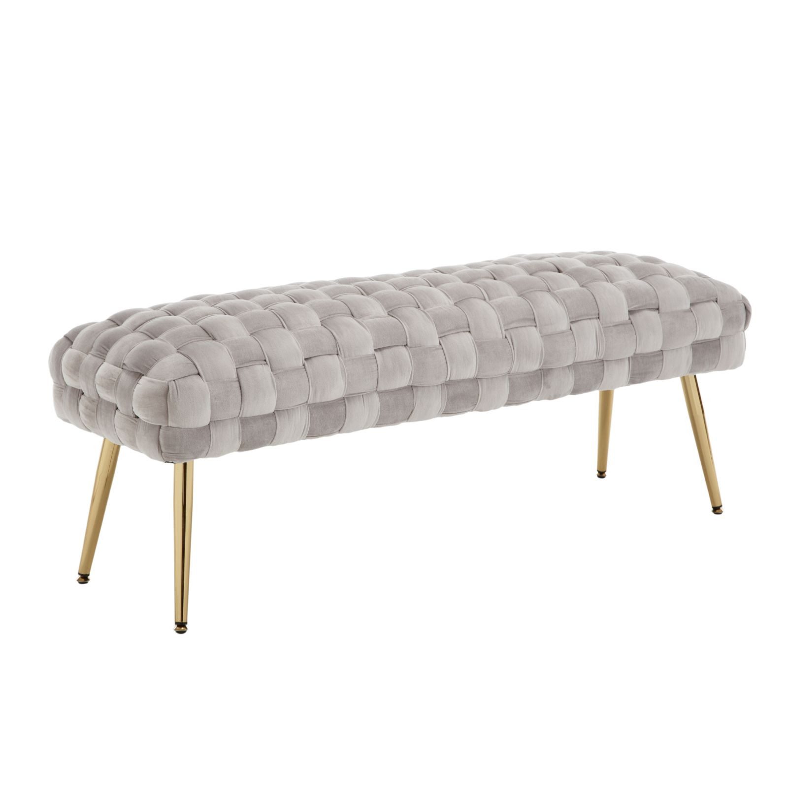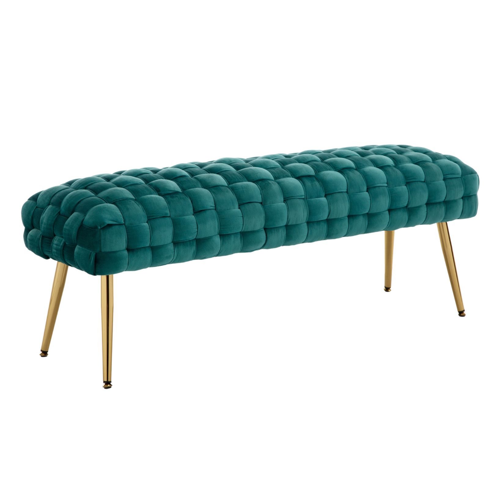 Luxuriöses Design: Die Samt-Sitzbank mit eleganten, goldfarbenen Metallbeinen veredelt jeden Raum. Das zeitlose Design passt perfekt zu modernen und klassischen Einrichtungsstilen.