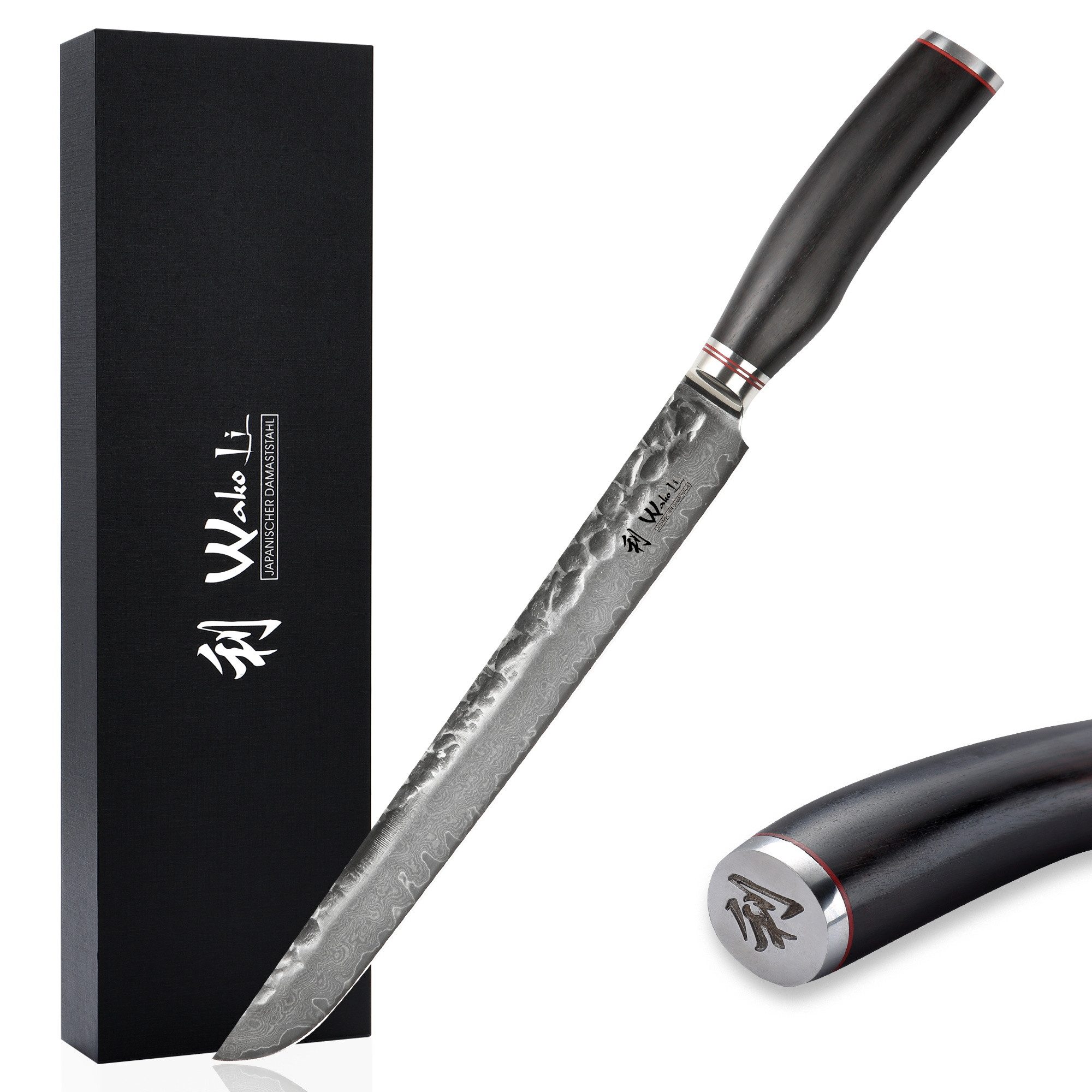Das Wakoli EBO Fleischmesser in Tanto-Form ist ein kraftvolles Werkzeug für präzises Schneiden. Mit einer 27,5 cm langen Klinge eignet es sich ideal zum Tranchieren und Portionieren großer Fleischstücke – perfekt für anspruchsvolle Hobby- und Profiköche.