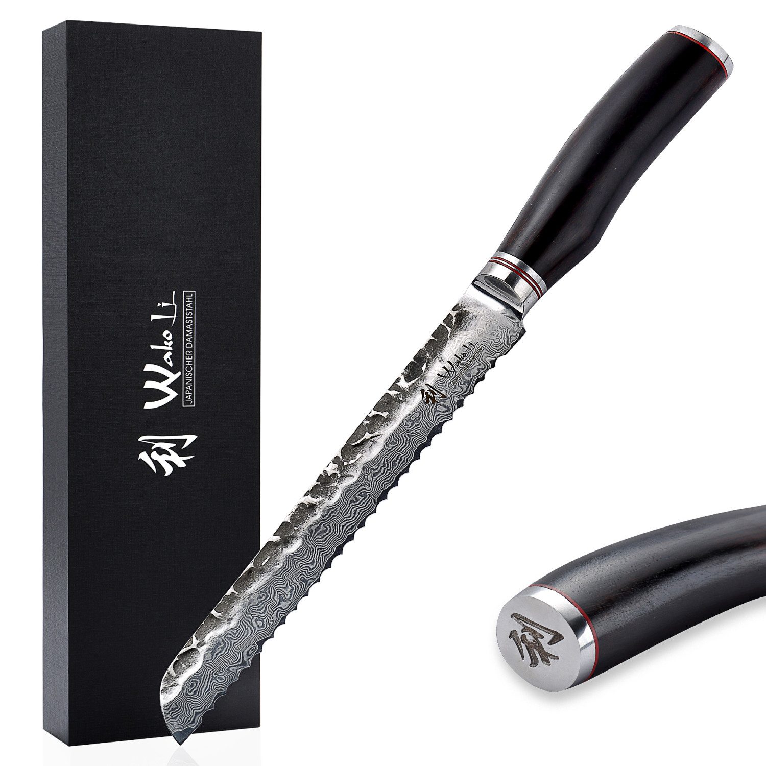 Das Brotmesser aus der Wakoli EBO Serie überzeugt durch seine kompromisslose Qualität und sein edles Design. Die 20 cm lange Klinge mit einseitigem Wellenschliff schneidet Brot, Braten mit Kruste, Gebäck oder Ananas mühelos und sauber.