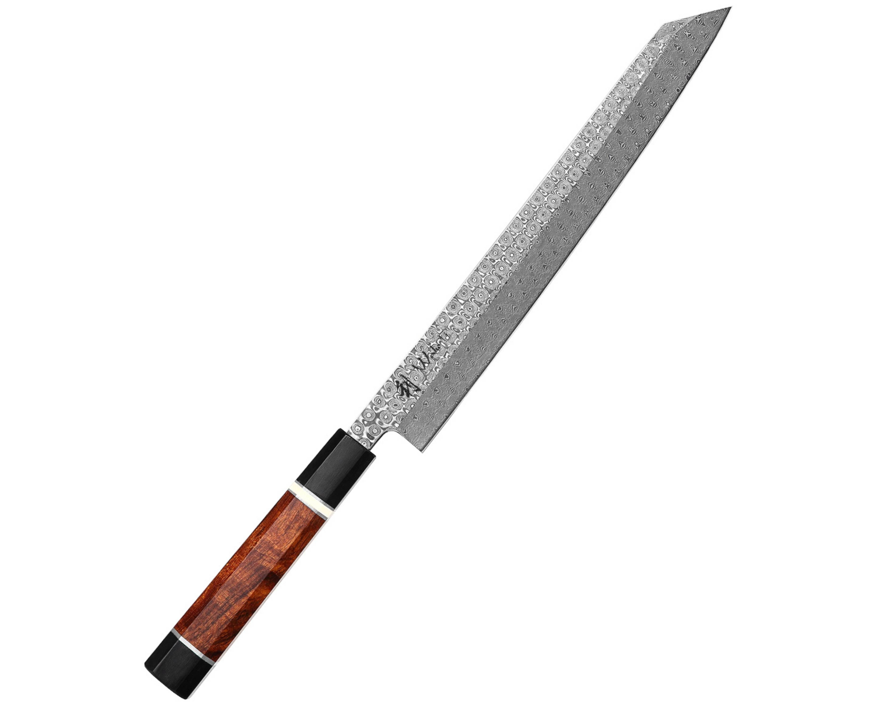 Das Kiritsuke der Seishin Serie ist ein Meisterwerk traditioneller Schmiedekunst. Mit seiner 28 cm langen Klinge aus 110 Lagen Volldamaststahl verbindet es außergewöhnliche Schärfe, Stabilität und eine markante Ästhetik. Es ist das perfekte Werkzeug für ambitionierte Köche, die Präzision und Ausdruckskraft in einem Messer suchen.