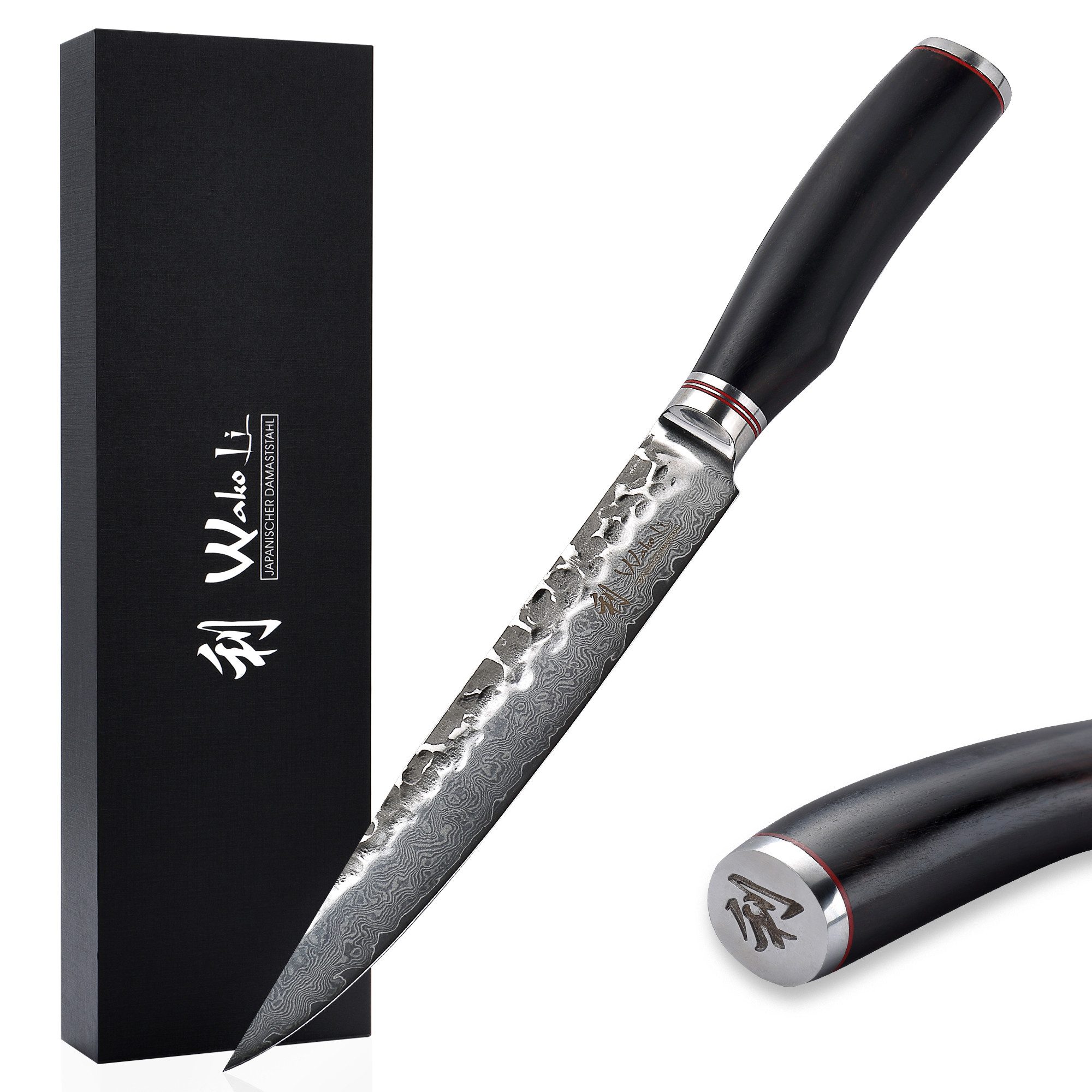 Das Wakoli EBO Damastmesser ist ein elegantes und leistungsstarkes Fleischmesser mit einer 20 cm langen Klinge. Es eignet sich ideal zum Tranchieren, Schneiden und Portionieren von Fleisch, Braten und BBQ-Zutaten – perfekt für ambitionierte Hobby- und Profiköche.