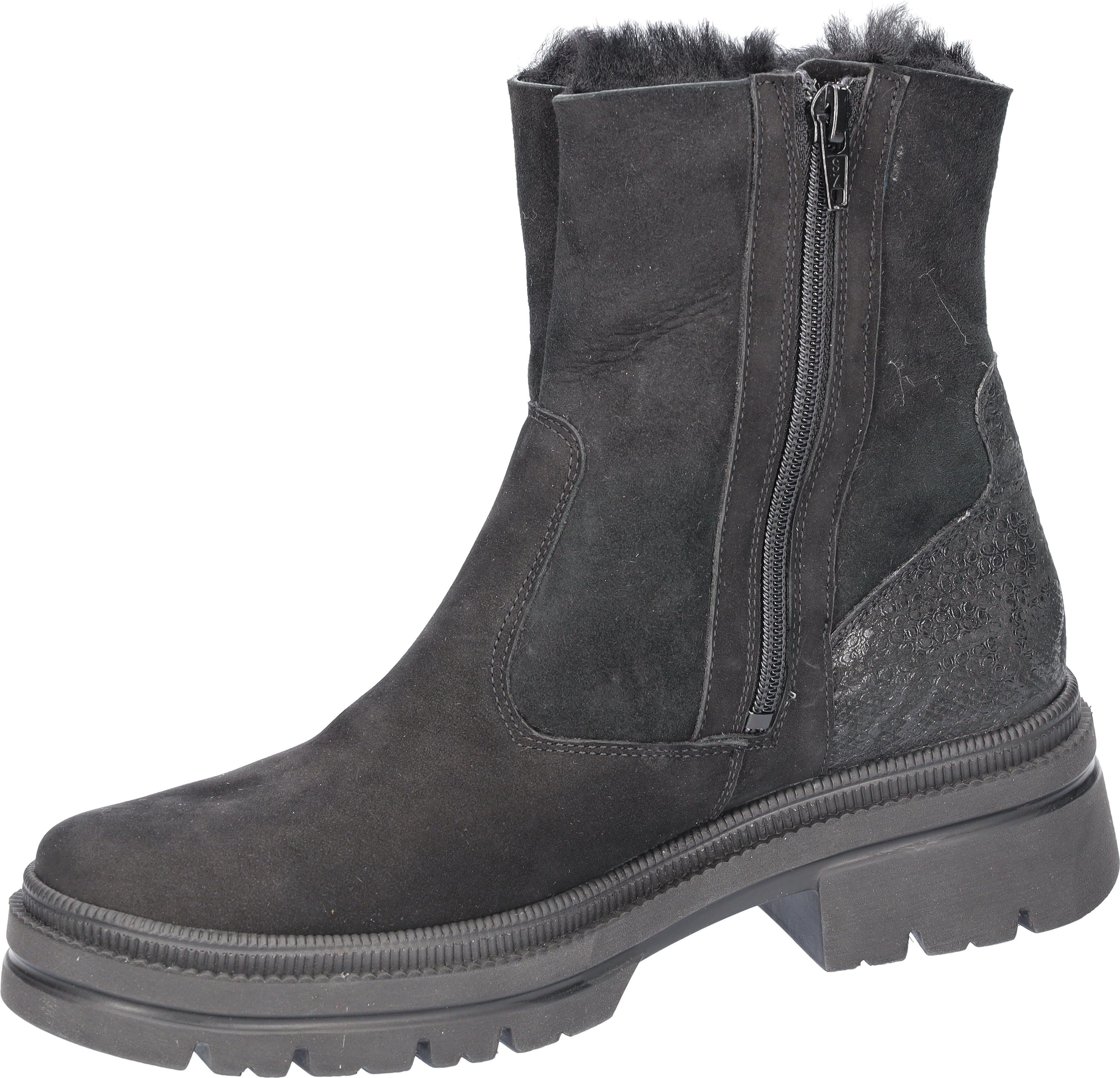Das Obermaterial aus Lammfell und Nubukleder ist sehr weich und kratzt nicht. Dank der stark profilierten Sohle aus Synthetik sorgen die Winterstiefeletten für mehr Rutschfestigkeit auf unebenem Untergrund. Innerhalb des Schuhs sorgt das Lammfell für eine angenehme Wärme. Die herausnehmbare Filz-Innensohle ist wärmend. Der Blockabsatz und die klassische runde Schuhspitze bieten mehr Platz für die Zehen und sind besonders bei langen Tragezeiten von Vorteil. Diese Winterstiefeletten in Weite H sind ideal für Füße mit mehr Volumen.