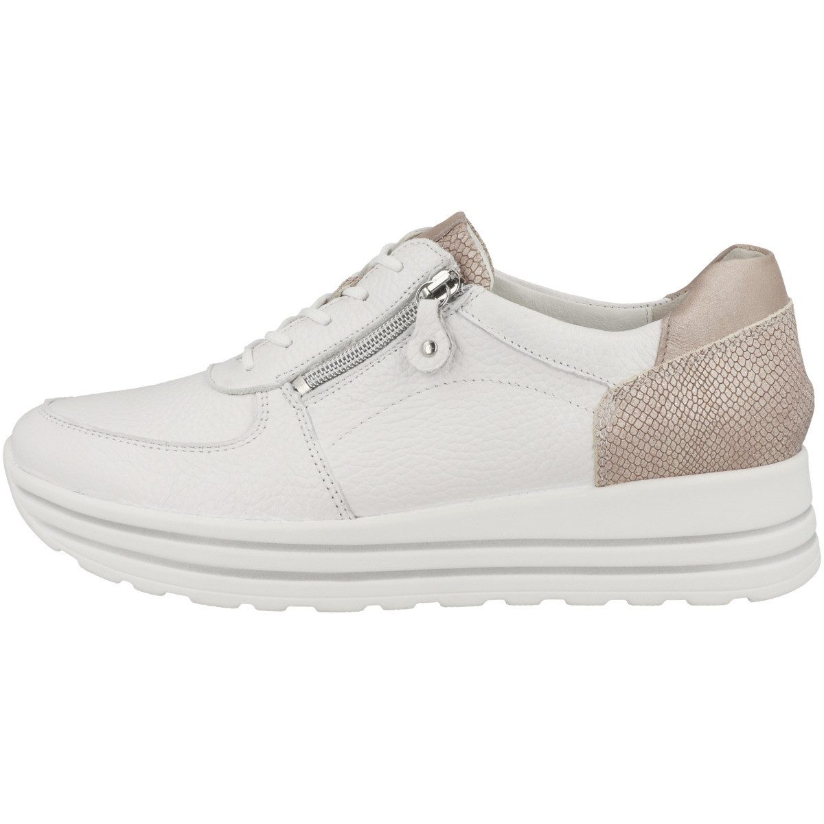 Der Waldläufer H-Lana Sneaker für Damen ist ein sportlich, bequemer Halbschuh im modischen und dennoch zeitlosen Design. Das Obermaterial aus hochwertigem Nappaleder ist besonders anschmiegsam und dennoch robust. Das gepolsterte und herausnehmbare Wechselfußbett optimiert das Tragegefühl und passt sich deiner Fußsohle gekonnt an. Somit bietet die weiche Einlage jederzeit ein besonders sanftes und bequemes Auftreten. Der seitliche Reißverschluss erleichtert das An- und Ausziehen des Sneakers und mit der Schnürung lässt er sich individuell auf deinen Fuß anpassen. Raffiniert gesetzte Nähte erzeugen ein harmonisches Gesamtbild. Ein leichter und gleichzeitig stylischer Schuh, der sich bestens zu einer klassischen Jeans oder schicken Stoffhose kombinieren lässt.