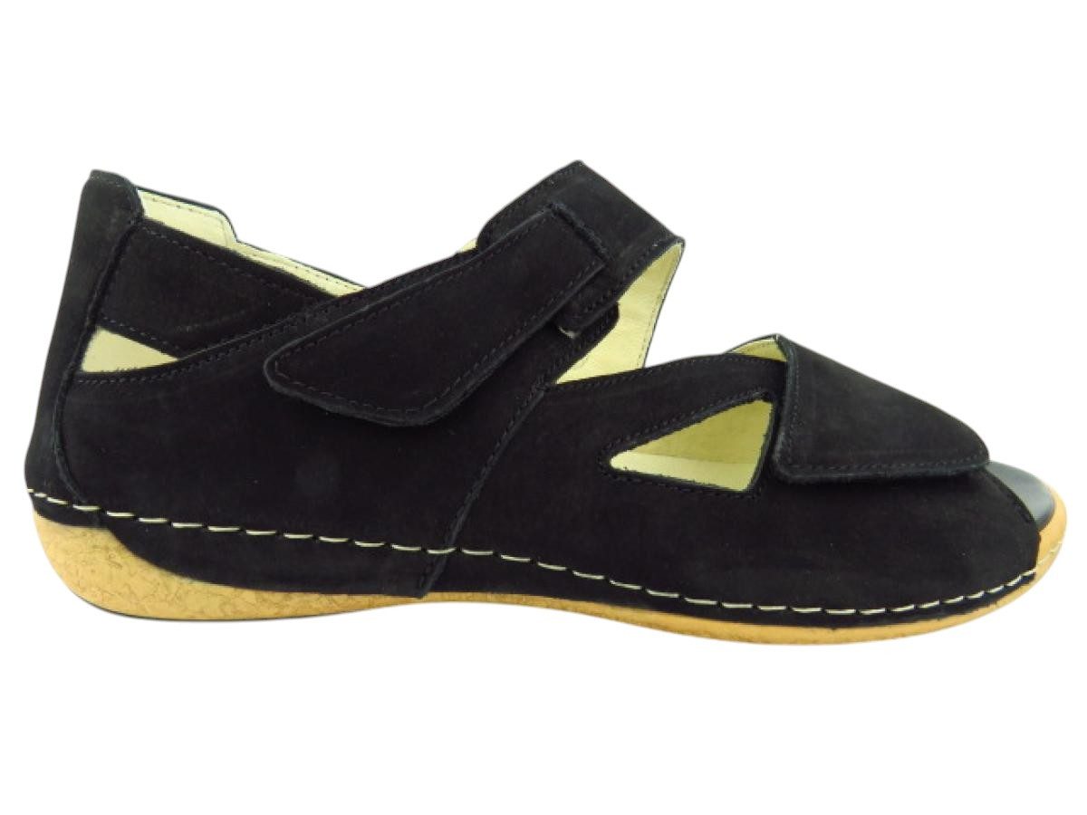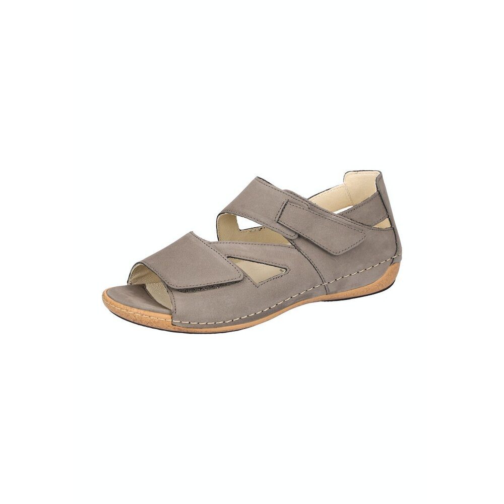 Das Obermaterial aus Nubukleder ist widerstandsfähig und langlebig. Dank der leicht profilierten Sohle aus Synthetik sorgen die Sandalen für mehr Rutschfestigkeit auf unebenem Untergrund. Individuelle Einlagen oder orthopädische Sohlen können dank der herausnehmbaren Leder-Innensohle genutzt werden. Dank dem Keilabsatz sind die Sandalen ideal für den Alltag und lange Tragezeiten. Diese Sandalen in Weite H sind ideal für Füße mit mehr Volumen.