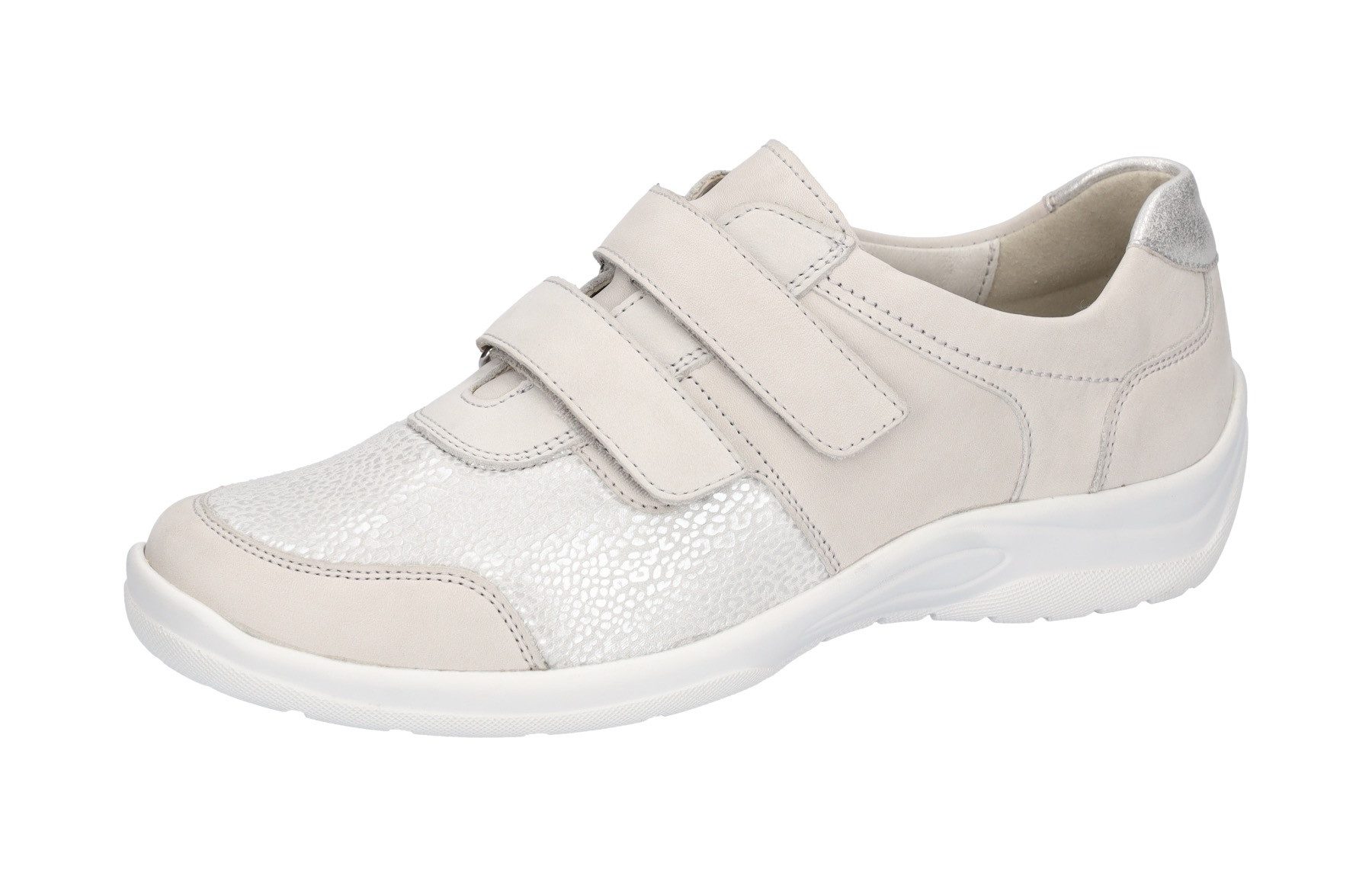 Das elastische Obermaterial besteht aus Nubukleder und Textil. Die leicht profilierte Synthetik-Sohle der Klettschuhe gibt dir auch auf unebenem Untergrund einen guten Halt. Die Innensohle aus Leder ist herausnehmbar, was eine individuelle Anpassung und einfache Reinigung ermöglicht. Dank dem Keilabsatz sind die Klettschuhe ideal für den Alltag und lange Tragezeiten. Diese Klettschuhe in Weite H sind für kräftigere, volle Füße geeignet.