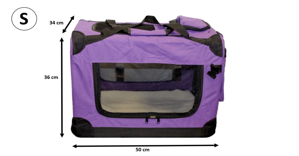 Hunde-/Katzentransportbox Faltbare Hundebox Haustier Auto Transportbox auch für Welpen, Katzen u.a. Haustiere Gute Verarbeitung - Robuste Metallverstärkung durch Stahlrohrrahmen, dicker Bezug aus Oxford Gewebe Modernes Design - Mit gut vernähten Sichtnetzen, Sichtfenster. 3 Türen (vorne, Seite und oben), eingearbeitete Klettbändern Auf der Box und am hinteren Ende befinden sich je eine Tasche.Sie können z.B. darin Futter oder das Spiezeug der Liebsten bequem verstauen Durch die dreiseitigen Sichtfenster zirkuliert die Luft, und abgerundete Ecken schützen Auto und Einrichtung Stabiler Innenrahmen aus leichten Stahlrohr Flecken und Schmutz lassen sich mit einer weichen Bürste entfernen. Der Bezug lässt sichmittels eines Reißverschlusses sehr leicht abziehen und reinigen Praktische faltbare Hunde- und Katzenbox in 4 Größen und 5 Farben ideal für zu Hause oder auf Reisen Doppelte Tragegriffe mit Klettverschluss-Kombi-System für kurzzeitiges Tragen, für Innen und Außenbereich geeignet Размер S: ( L 50 x B 34 x H 36 ) / ca. 2,78 kg Размер M: ( L 60 x B 42 x H 44 ) / ca. 3,03 kg Размер L : ( L 70 x B 50 x H 52 ) / ca. 4,34 kg Размер XL: ( L 82 x B 58 x H 58 ) / ca. 5,12 kg Beachten Sie bitte bei der Bestellung, daß ihr Haustier in der Box genug Platz hat und sich auch ebventuell mal hinsetzt. Wir empfehlen daher, die Box eine Nummer Größer zu bestellen. Lieferumfang: Transportbox nach Ihrer Wahl