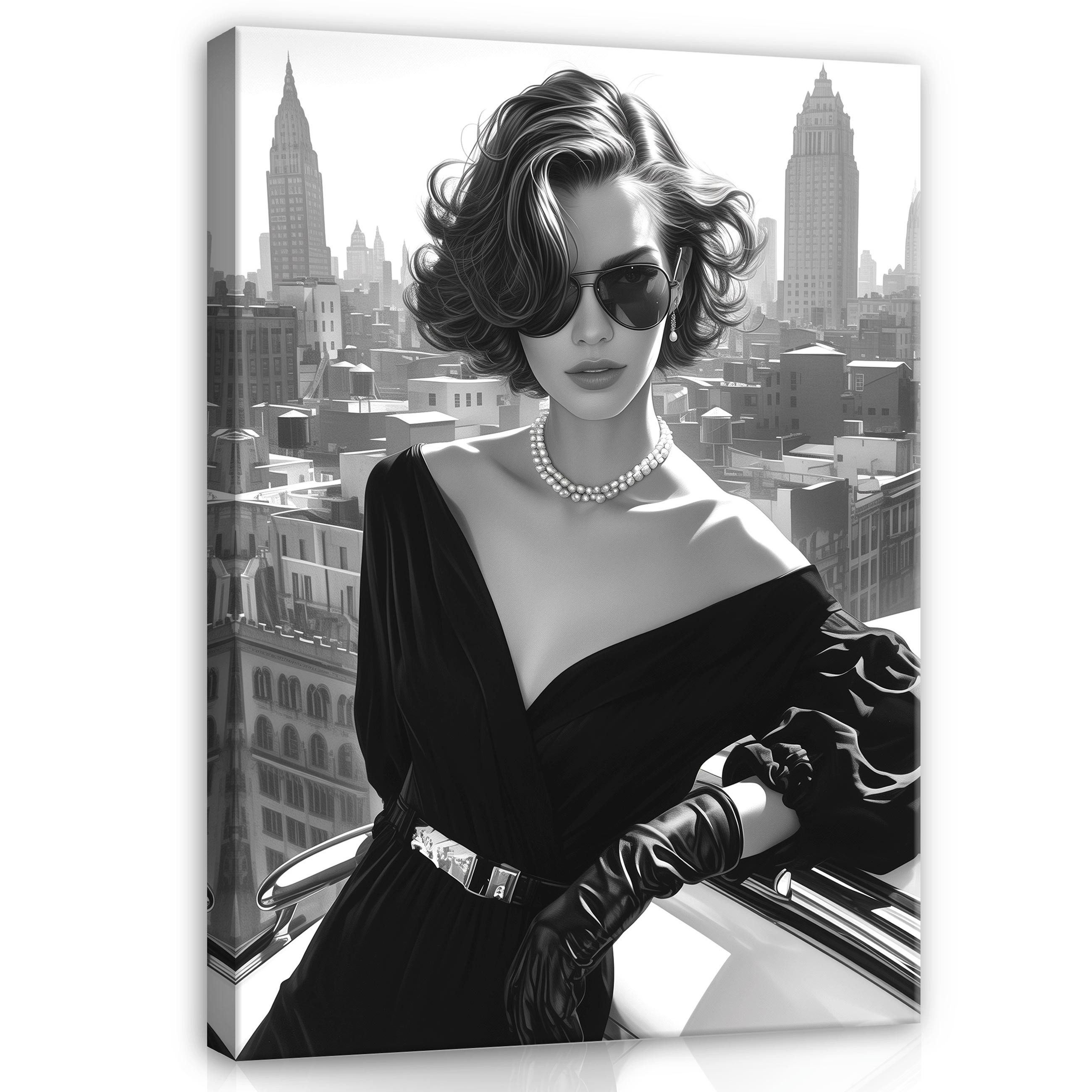 Dieses XXL-Leinwandbild beeindruckt mit gestochen scharfen Details und eleganten Schwarz-Weiß-Tönen, die dank modernster Drucktechnologie besonders langlebig sind. Der Kunstdruck auf hochwertiger Canvas hebt die feinen Gesichtszüge, den stilvollen Hut und die subtilen Schattierungen perfekt hervor und sorgt für eine beeindruckende Tiefenwirkung. Die robuste Leinwand ist auf einen stabilen Holzrahmen gespannt, sodass das Wandbild aufhängefertig geliefert wird – einfach auspacken und direkt anbringen.