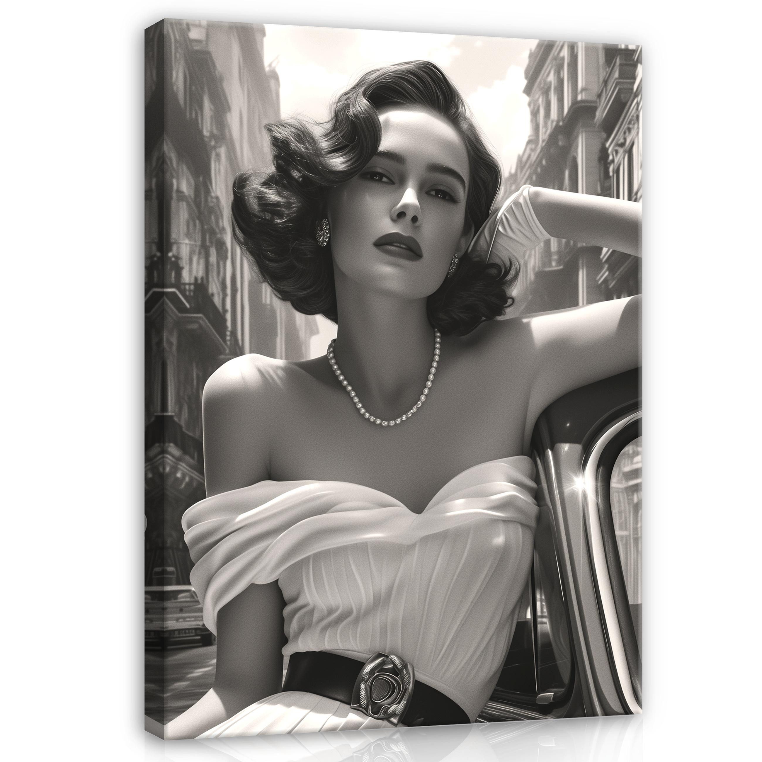 Dieses XXL-Leinwandbild beeindruckt mit gestochen scharfen Details und eleganten Schwarz-Weiß-Tönen, die dank modernster Drucktechnologie besonders langlebig sind. Der Kunstdruck auf hochwertiger Canvas hebt die feinen Gesichtszüge, den stilvollen Hut und die subtilen Schattierungen perfekt hervor und sorgt für eine beeindruckende Tiefenwirkung. Die robuste Leinwand ist auf einen stabilen Holzrahmen gespannt, sodass das Wandbild aufhängefertig geliefert wird – einfach auspacken und direkt anbringen.