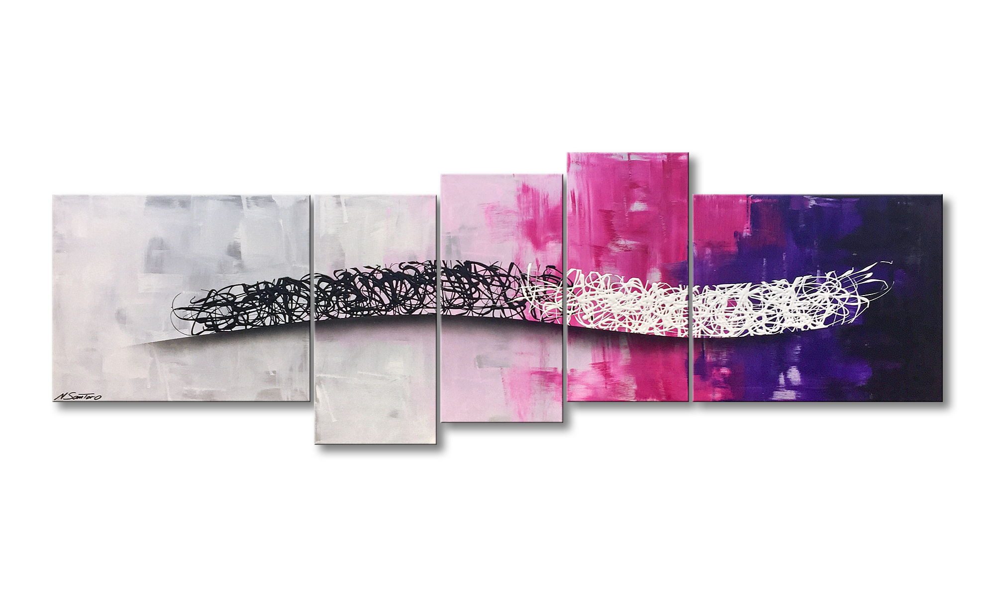 • In diesem Wandbild werden unter anderem die Farben Schwarz, Weiss, Lila und Pink verwendet
