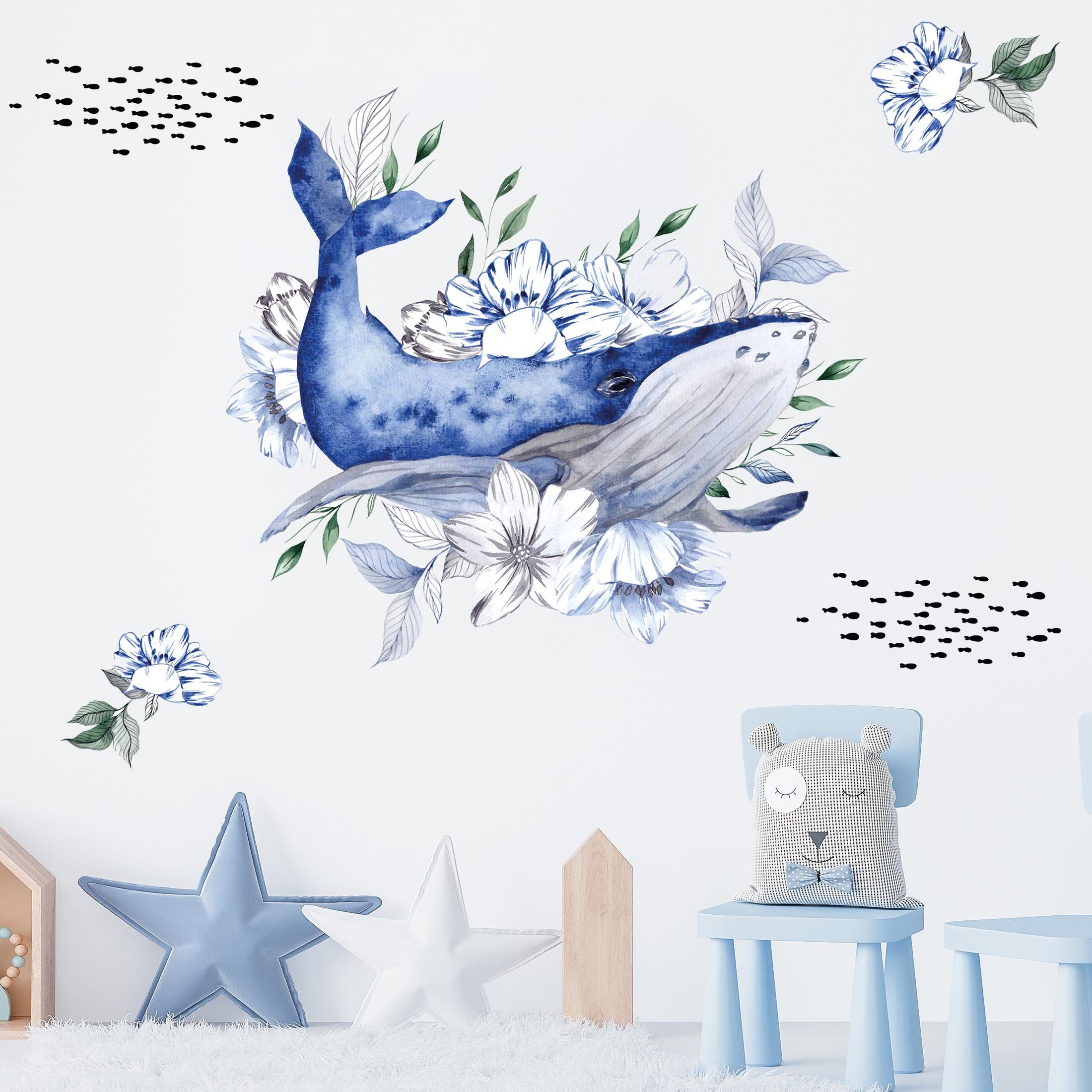 LIEFERUMFANG: Ein Wandtattoo mit dem Wal und Pflanzen, in der Wunschgröße (Breite x Höhe) inkl. Anleitung zur kinderleichten Anbringung