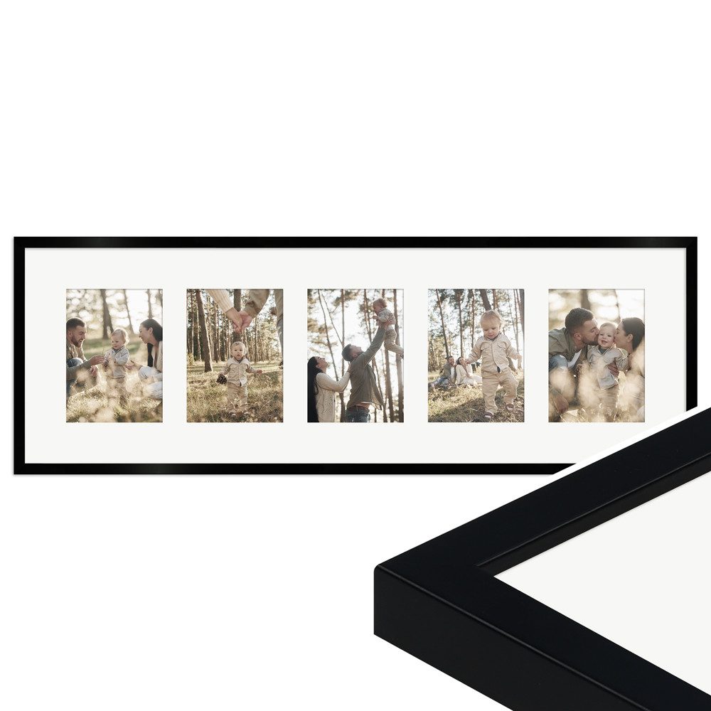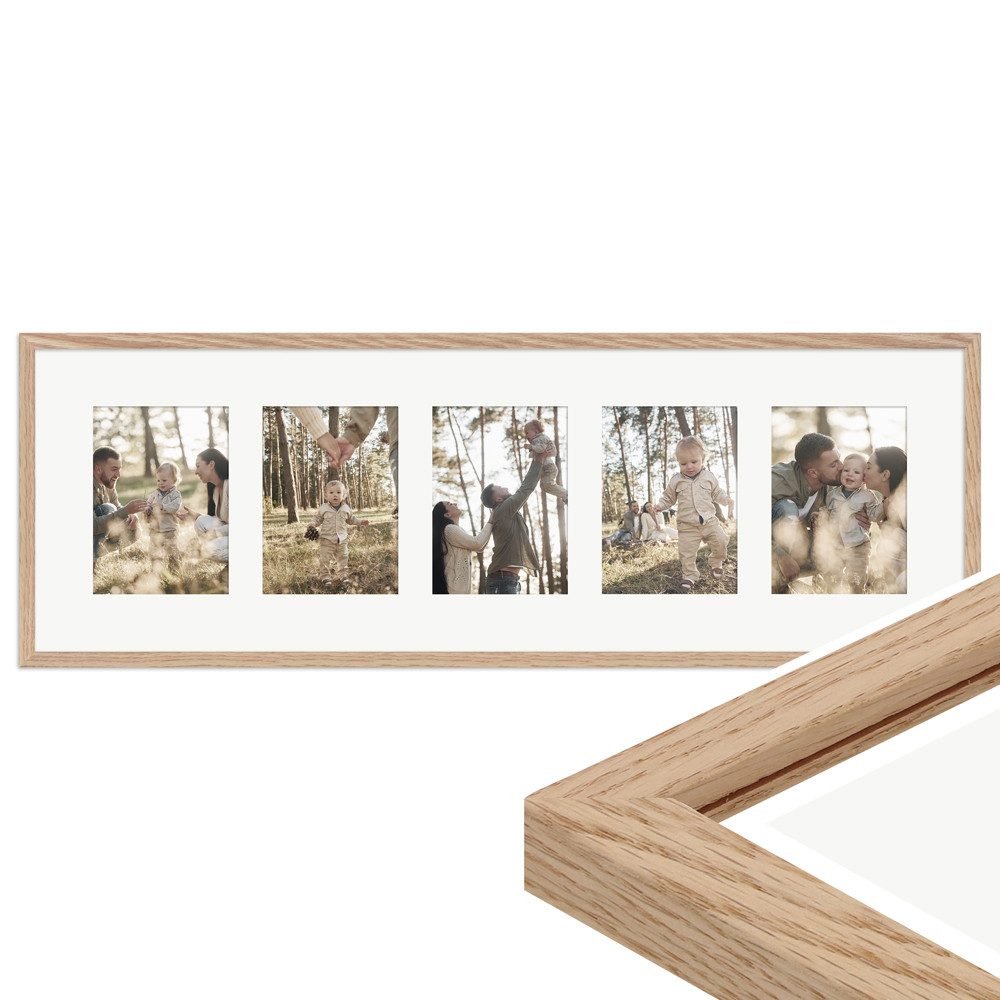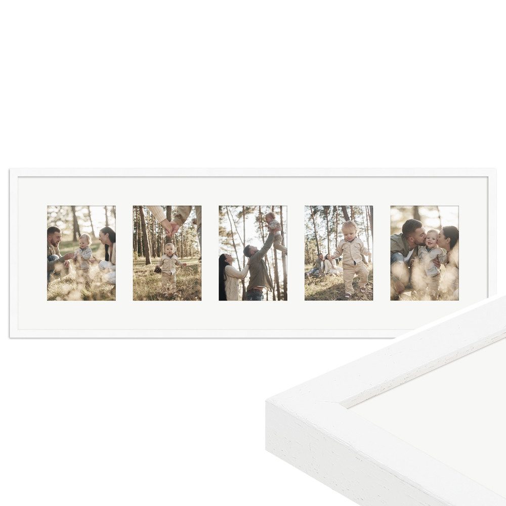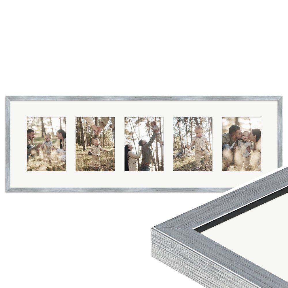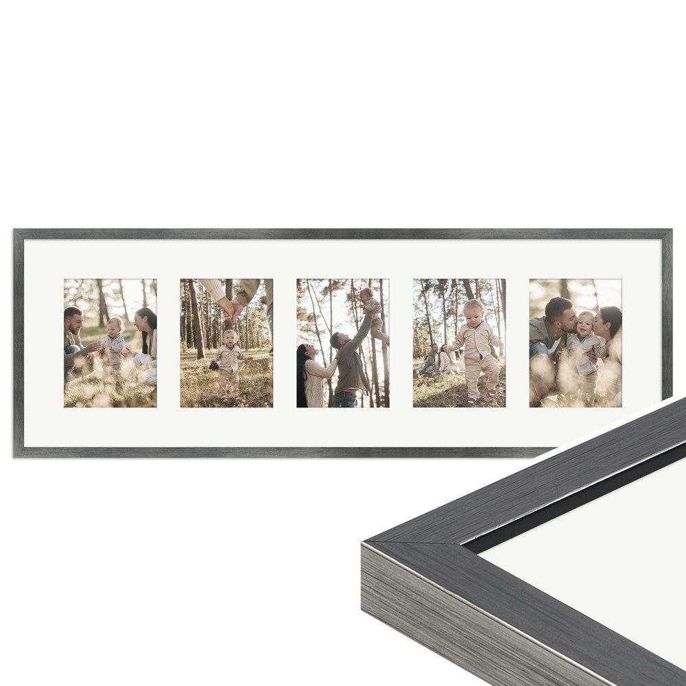 Unser Galerierahmen G950 im klassischen Stil verleiht deinen schönsten Erinnerungen die passende Umrahmung. Der hochwertige Mehrfachbilderrahmen in der Размер 30x90 cm eignet sich für die Präsentation von 5 Bildern im Format 13x18 cm und fügt sich harmonisch in jede Wohnumgebung ein. Er ist in vielen verschiedenen Farben erhältlich, sodass du den perfekten Ton für deine Einrichtung finden kannst. Der Galerierahmen ist flexibel für die Hoch- und Queraufhängung geeignet, was dir die Freiheit gibt, deine Bilderwand frei nach deinen Wünschen zu gestalten. Zudem ist ein weißes Passepartout dem Lieferumfang enthalten, welches für eine besonders edle Optik sowie zusätzlichen Schutz der Bilder sorgt.