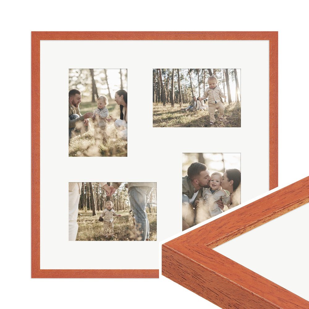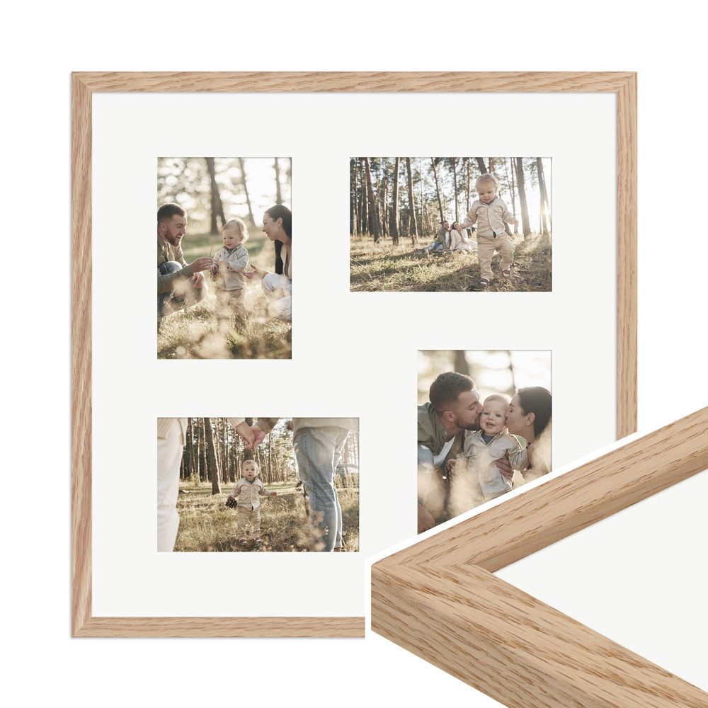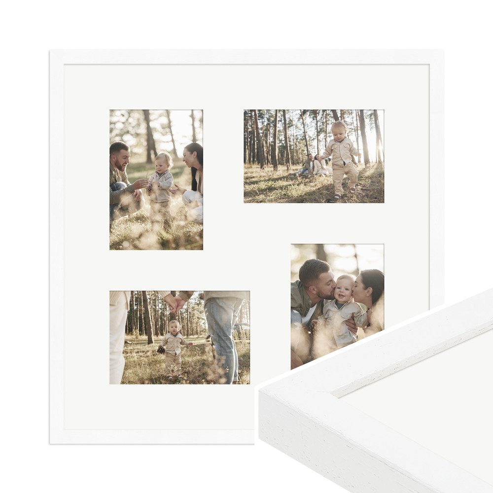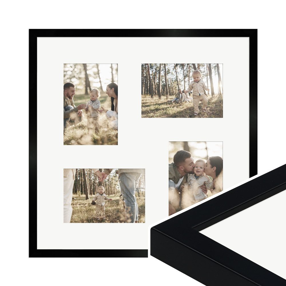 Unser Galerierahmen G950 im klassischen Stil verleiht deinen schönsten Erinnerungen die passende Umrahmung. Der hochwertige Mehrfachbilderrahmen in der Размер 40x40 cm eignet sich für die Präsentation von 4 Bildern im Format 10x15 cm und fügt sich harmonisch in jede Wohnumgebung ein. Er ist in vielen verschiedenen Farben erhältlich, sodass du den perfekten Ton für deine Einrichtung finden kannst. Zudem ist ein weißes Passepartout dem Lieferumfang enthalten, welches für eine besonders edle Optik sowie zusätzlichen Schutz der Bilder sorgt.