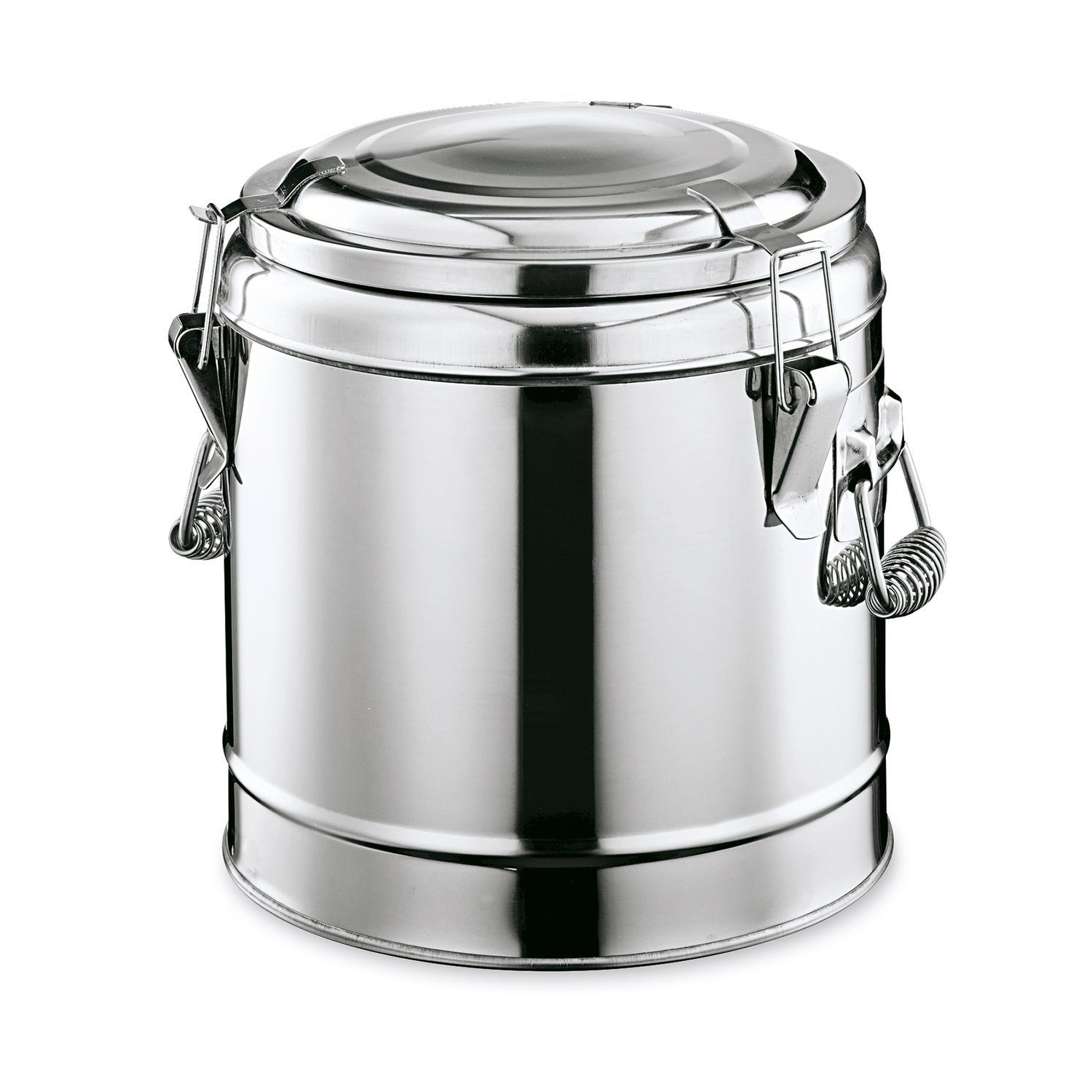 Mit 3 praktischen Verschlussklammern und einem Tragegriff lässt sich der Thermobehälter einfach und sicher transportieren. Der Boden des Behälters ist doppelwandig aus hitzebeständigem Chrom-Nickel-Stahl gefertigt und von innen isoliert. Ein hochwertiges, lebensmittelechtes Material sorgt zudem dafür, dass weder der Geschmack noch der Geruch Ihrer Speisen und Getränke beeinträchtigt wird. Damit bietet der Thermobehälter eine hygienische Anwendung und eine einfache Reinigung.