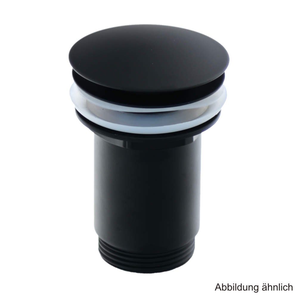 Eigenschaften: Ablaufgarnitur 1 1/4" permanent offen runder Stopfen geeignet für Waschtische ohne Übeerlauf Farbe "mattschwarz" AQ97090702
