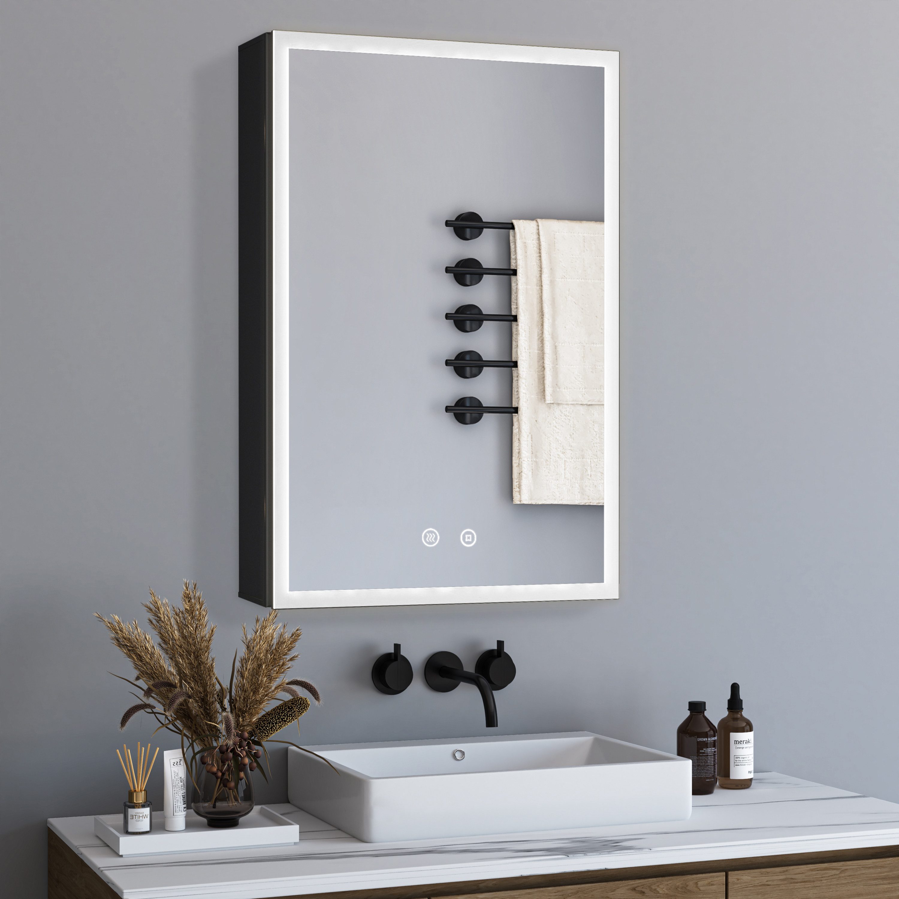 WDWRITTI LED Multifunktion Spiegelschrank mit Anti-fog 50x12,5x70cm