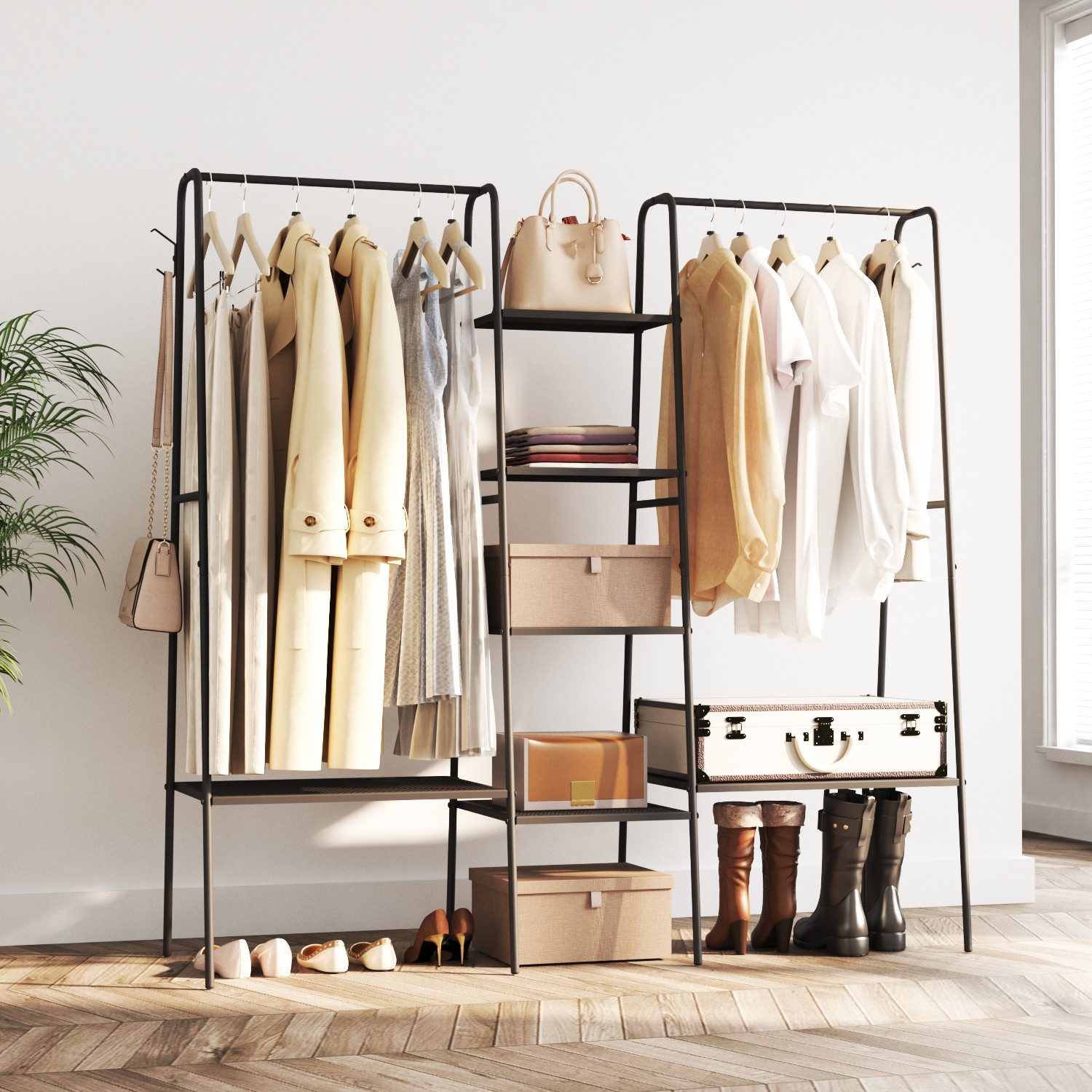 WDWRITTI 4-IN-1 Multifunktionaler Garderobenständer Schwarz 150,9x45x148cm