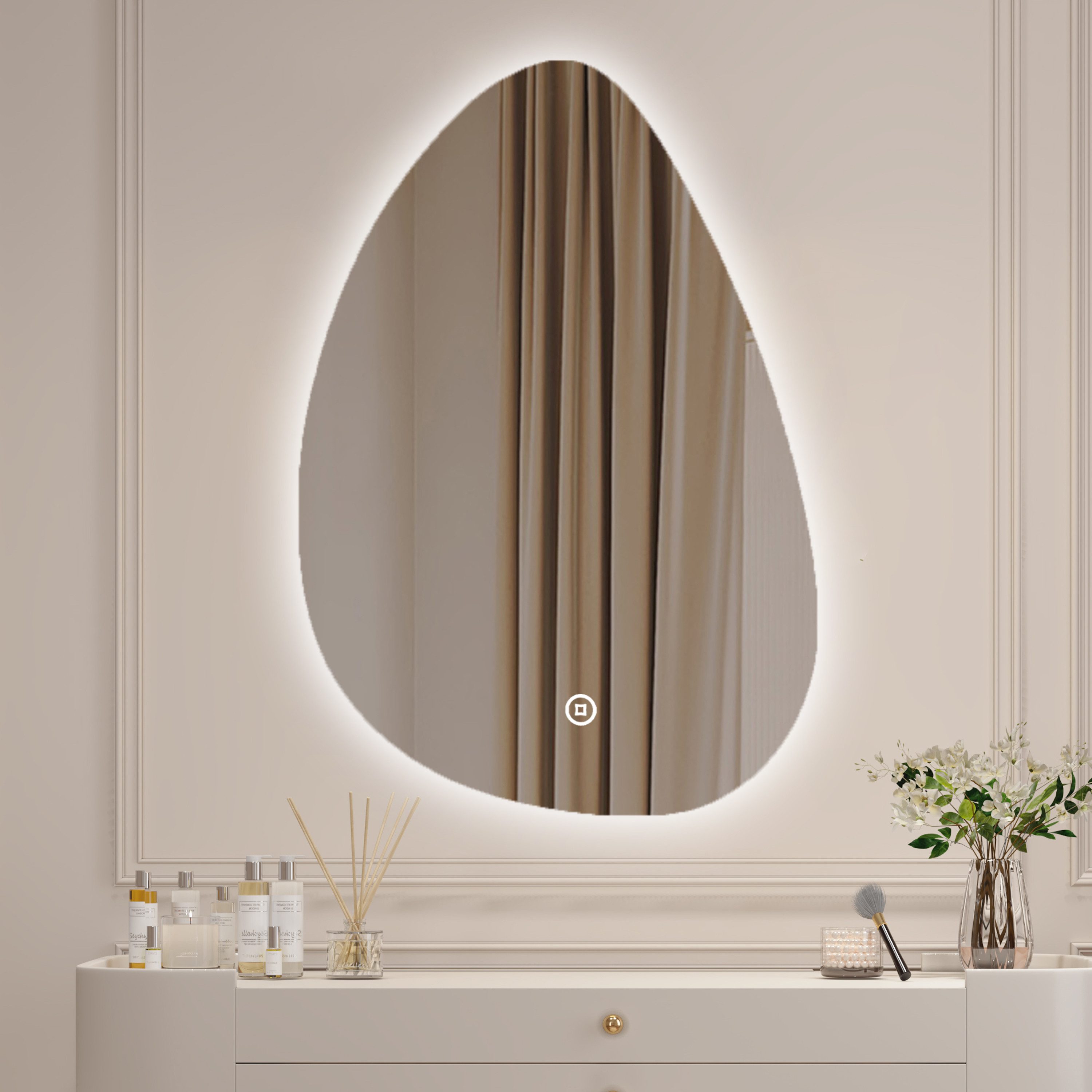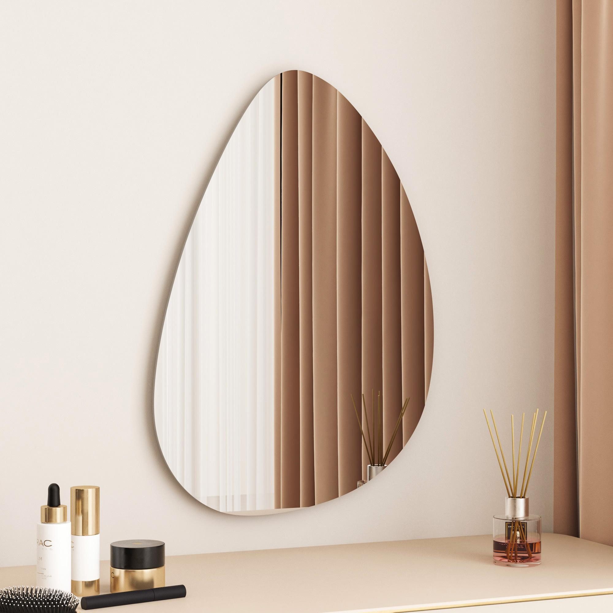 WDWRITTI Design Asymmetrischer Wandspiegel Wassertropfen 45x70cm - 5mm HD Glas