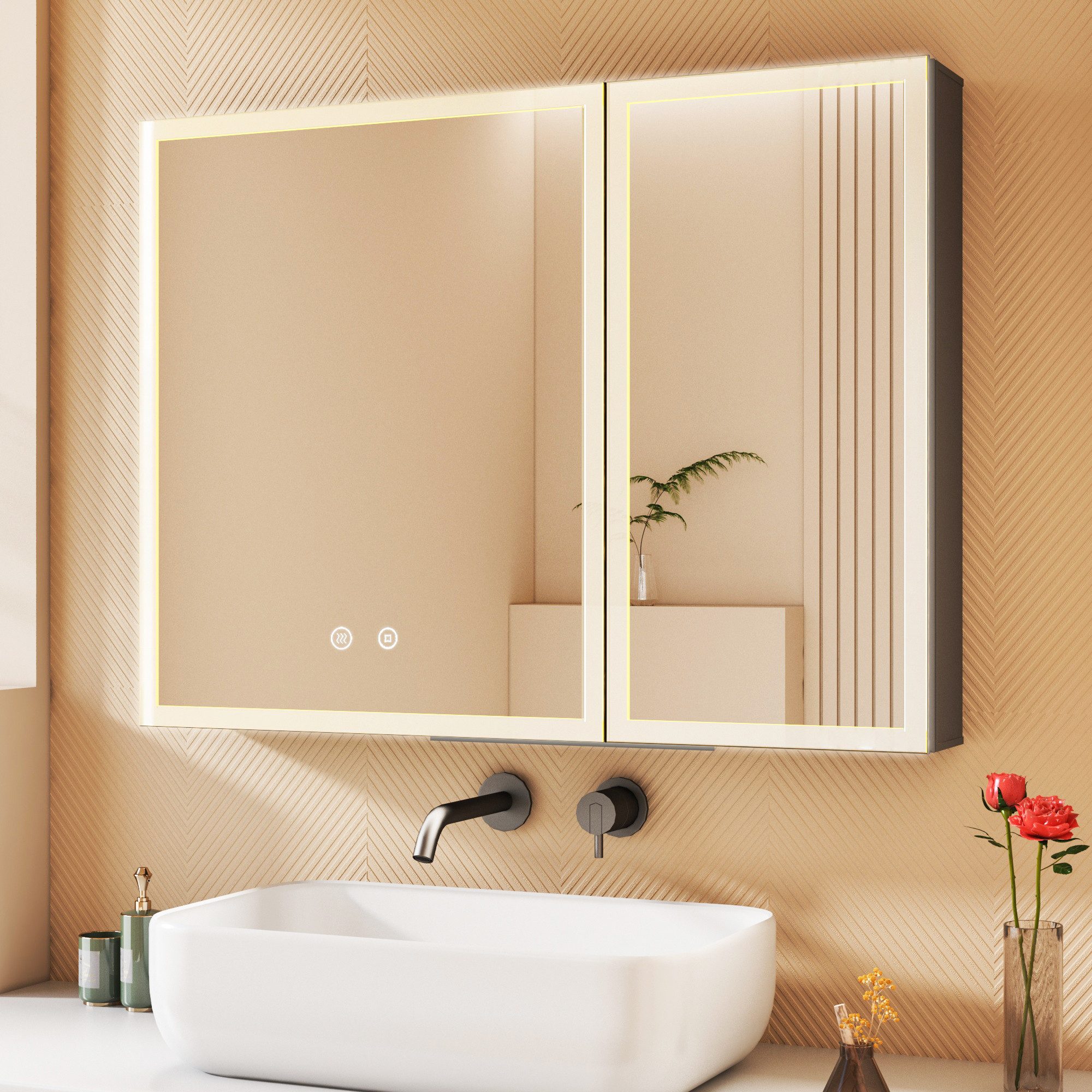WDWRITTI LED Multifunktion Alu-Spiegelschrank mit Anti-fog 80x12,5x60cm