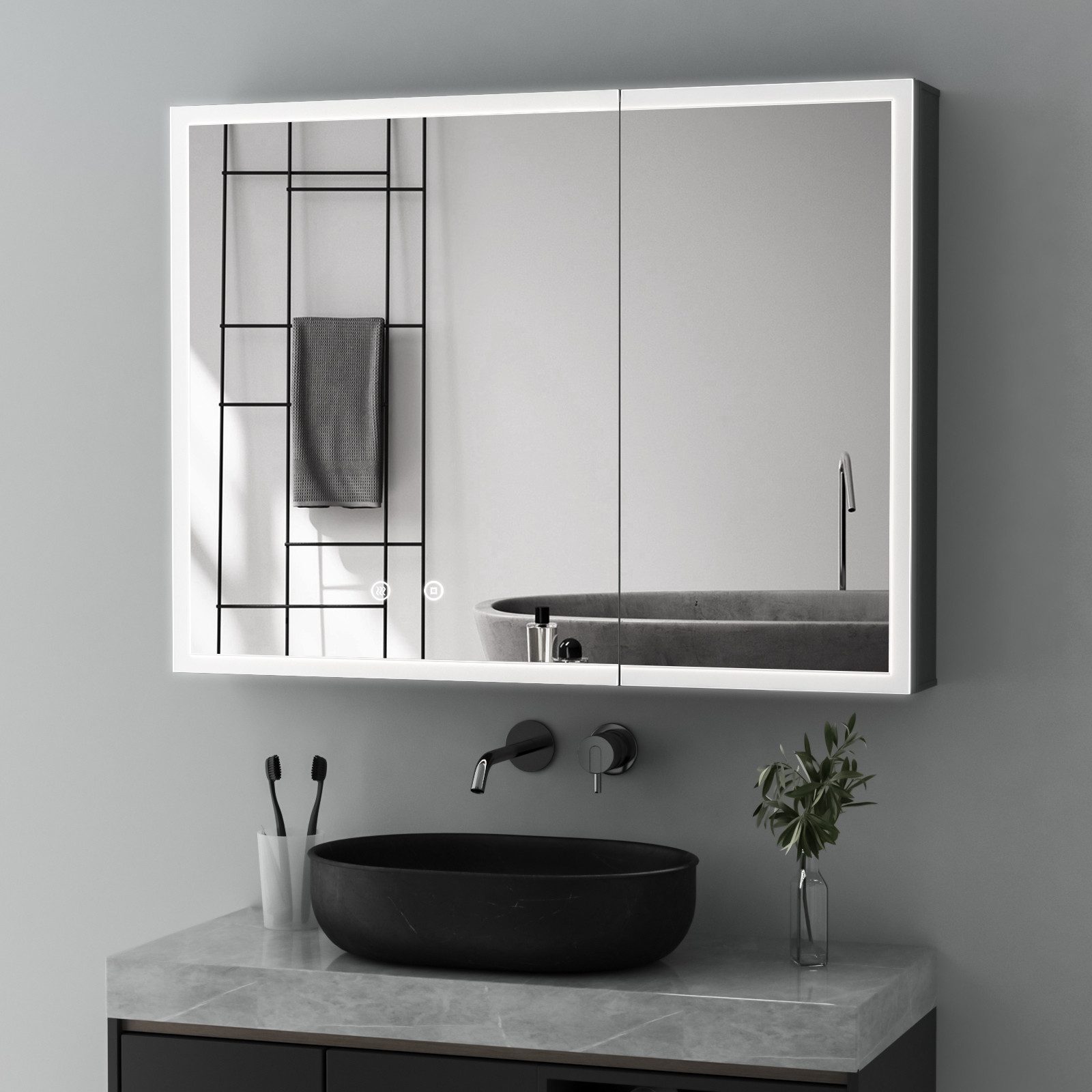 WDWRITTI LED Multifunktion Alu-Spiegelschrank mit Anti-fog 80x12,5x60cm