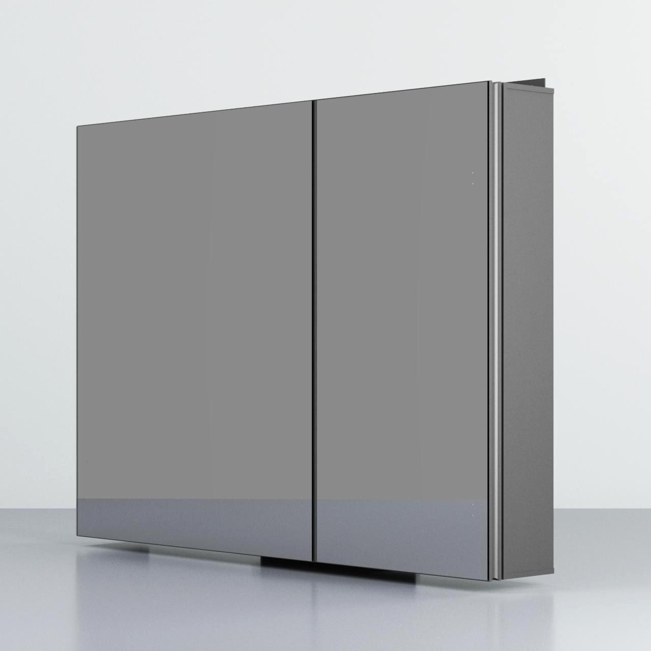 WDWRITTI Schwarz Matt Aluminium Spiegelschrank Eckig mit Glasböden 2-türig 80x12,5x60cm
