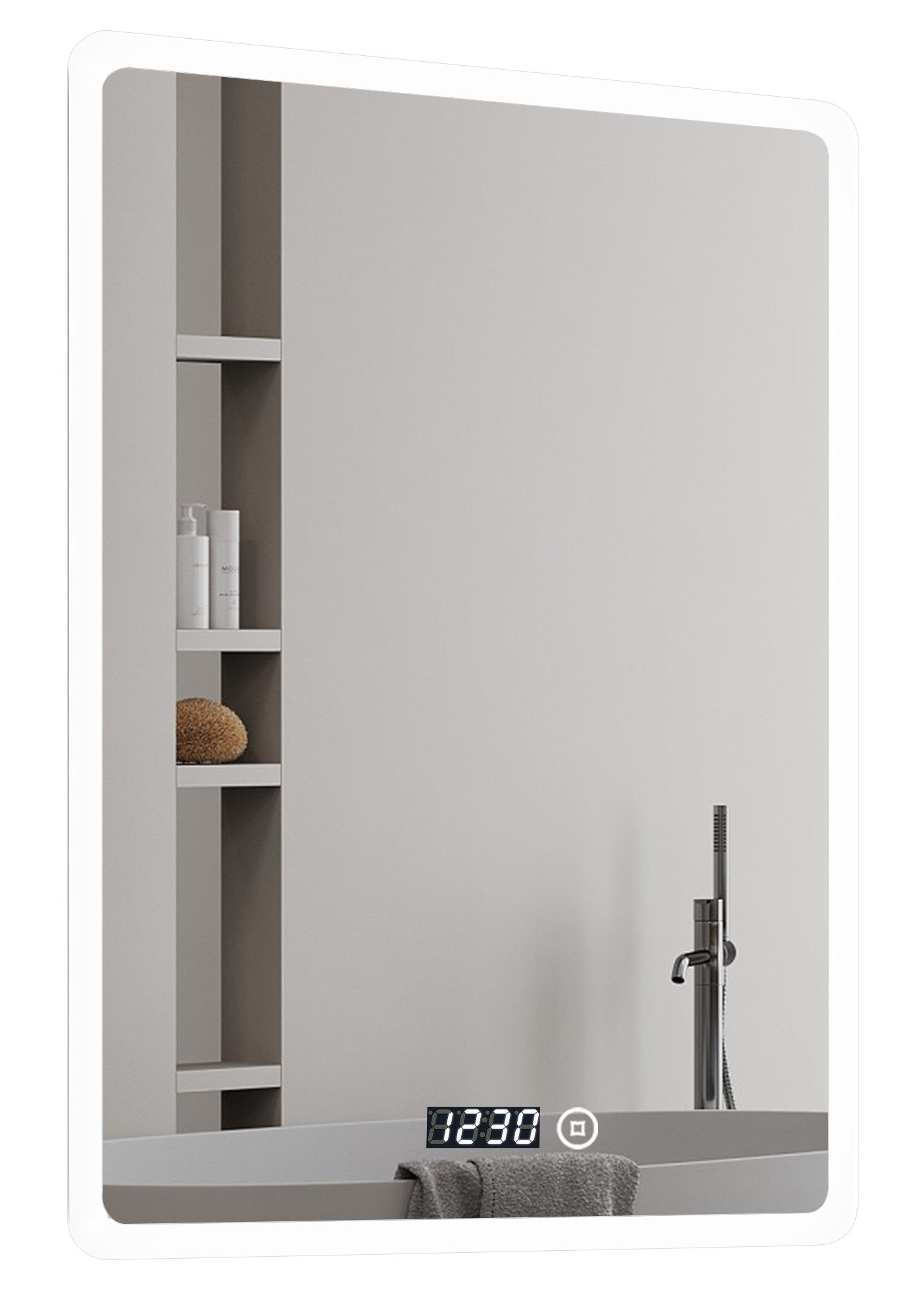 WDWRITTI LED Badspiegel mit Uhr & Speicherfunktion 3Lichtfarben+Dimmbar 50x70cm