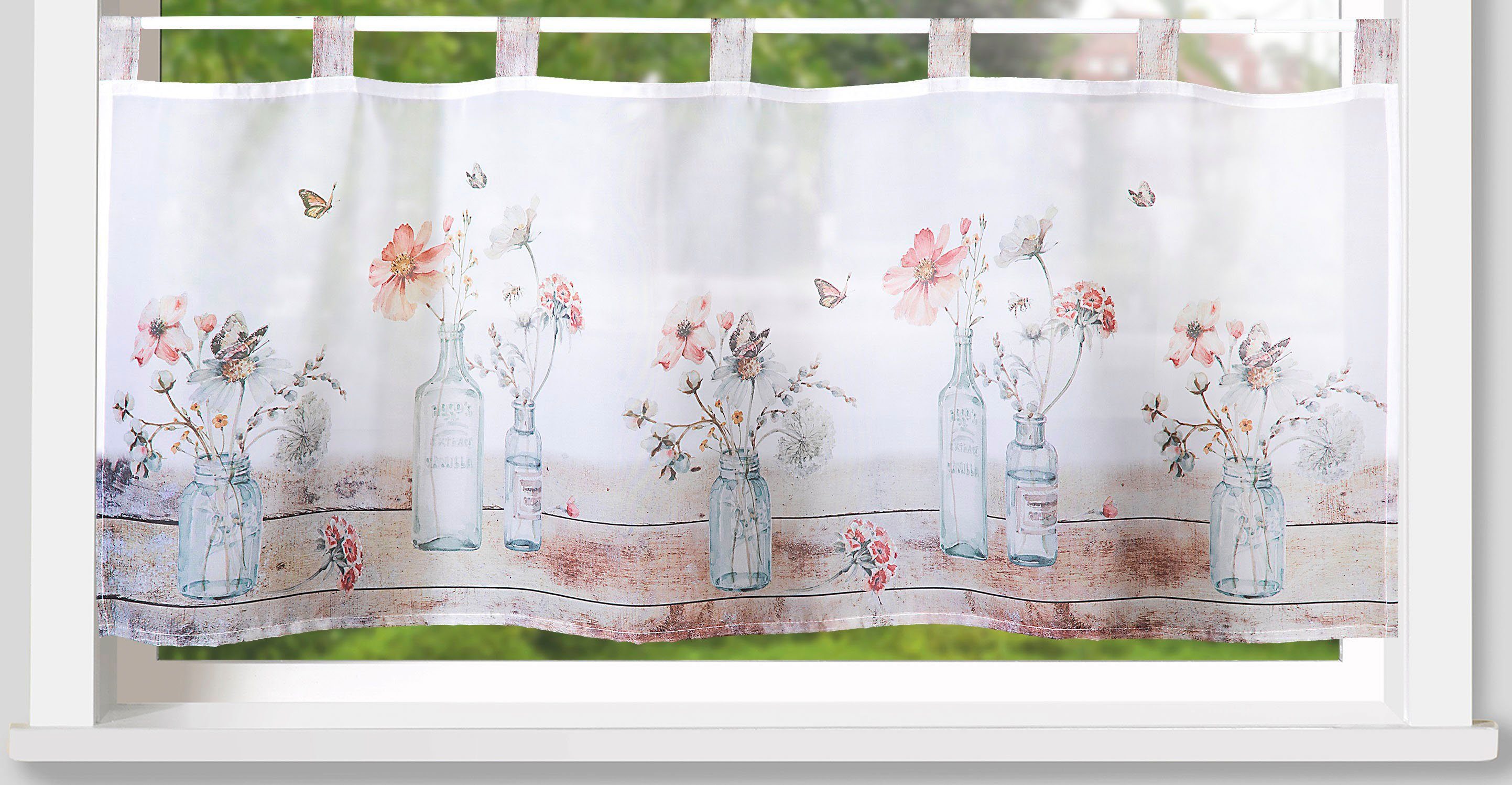 Hinweis Materialart | Eine Voilequalität bezeichnet ein zartes, luftiges Gewebe, das Lichtmilderung ohne Verdunkeln bietet. Bei farbigen Voiles bestimmen Sie selbst durch die Stärke des Kräuselns den gewünschten Farbeindruck zwischen hell (bei nur leichter Kräuselung) und intensiv farbig (bei stärkerer Kräuselung). Voile eignet sich durch seine variantenreichen Farben und Dessins hervorragend für Freihand-Dekorationen zur individuellen Fenster- und Raumgestaltung. |