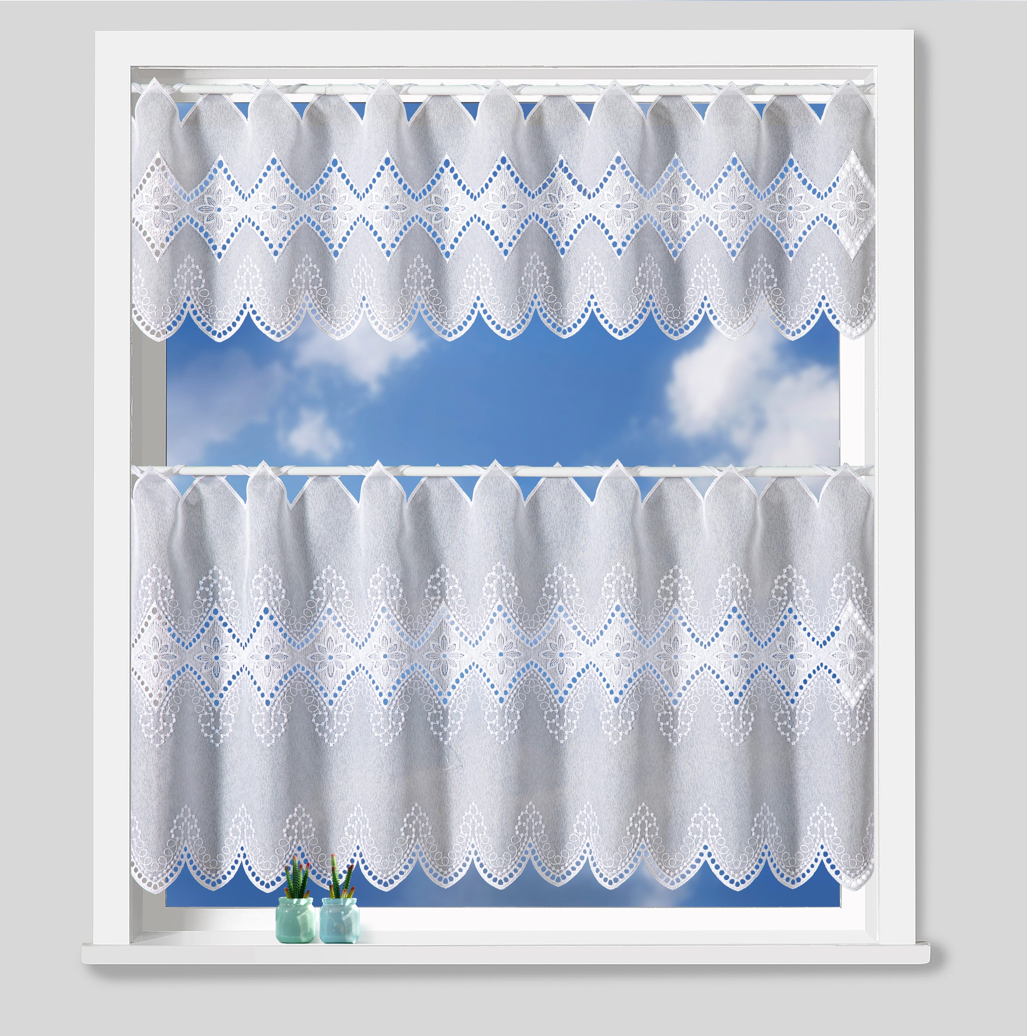 Hinweis Dekoration | Am Fenster fertig dekoriert, reduziert sich die Breite auf ca. ein Drittel. |