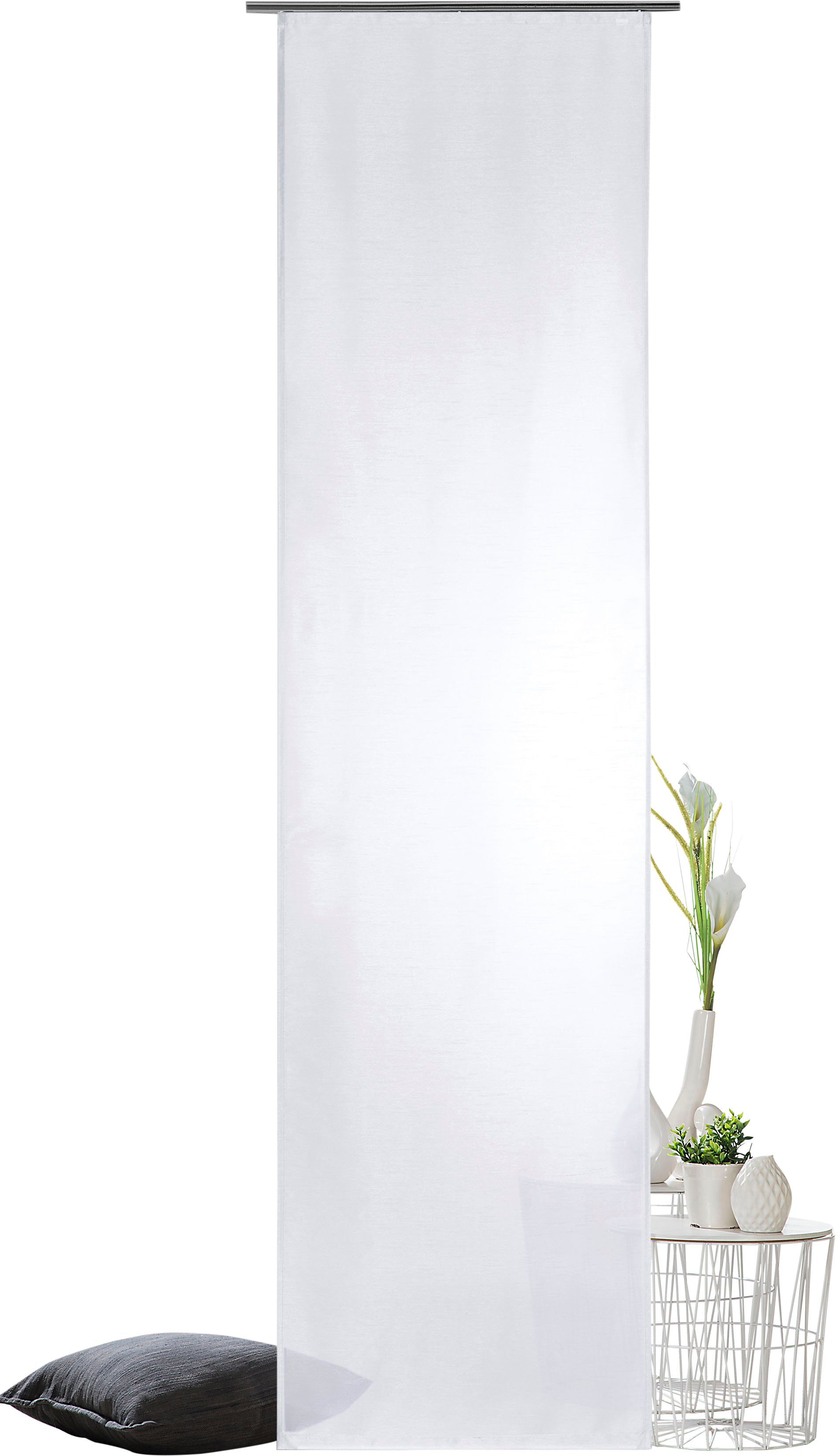 Hinweis Dekoration | Eine Schiebegardine ist eine schmale, glatt hängende Stoffbahn, die sich sowohl als Sichtschutz als auch zur Raumteilung eignet. Durch die Schiebetechnik sind Schiebegardinen sehr flexibel einsetzbar. |