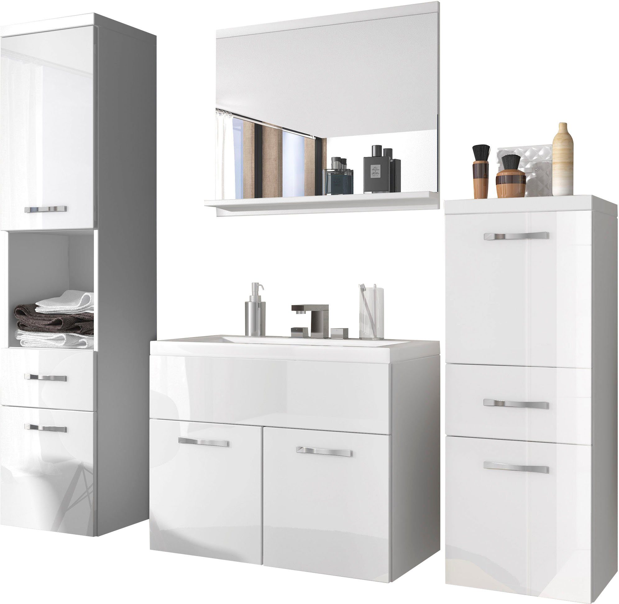 Hinweis Lieferumfang | Achtung: Nicht dabei ist ein POP UP Ablauf mit Überlauffunktion. Bitte in die Aufbauanleitung gucken. Aufbauanleitung Waschbecken mit Überlaufset , Waschbeckenunterschrank, Spiegel , Hochschrank, Hängeschrank |