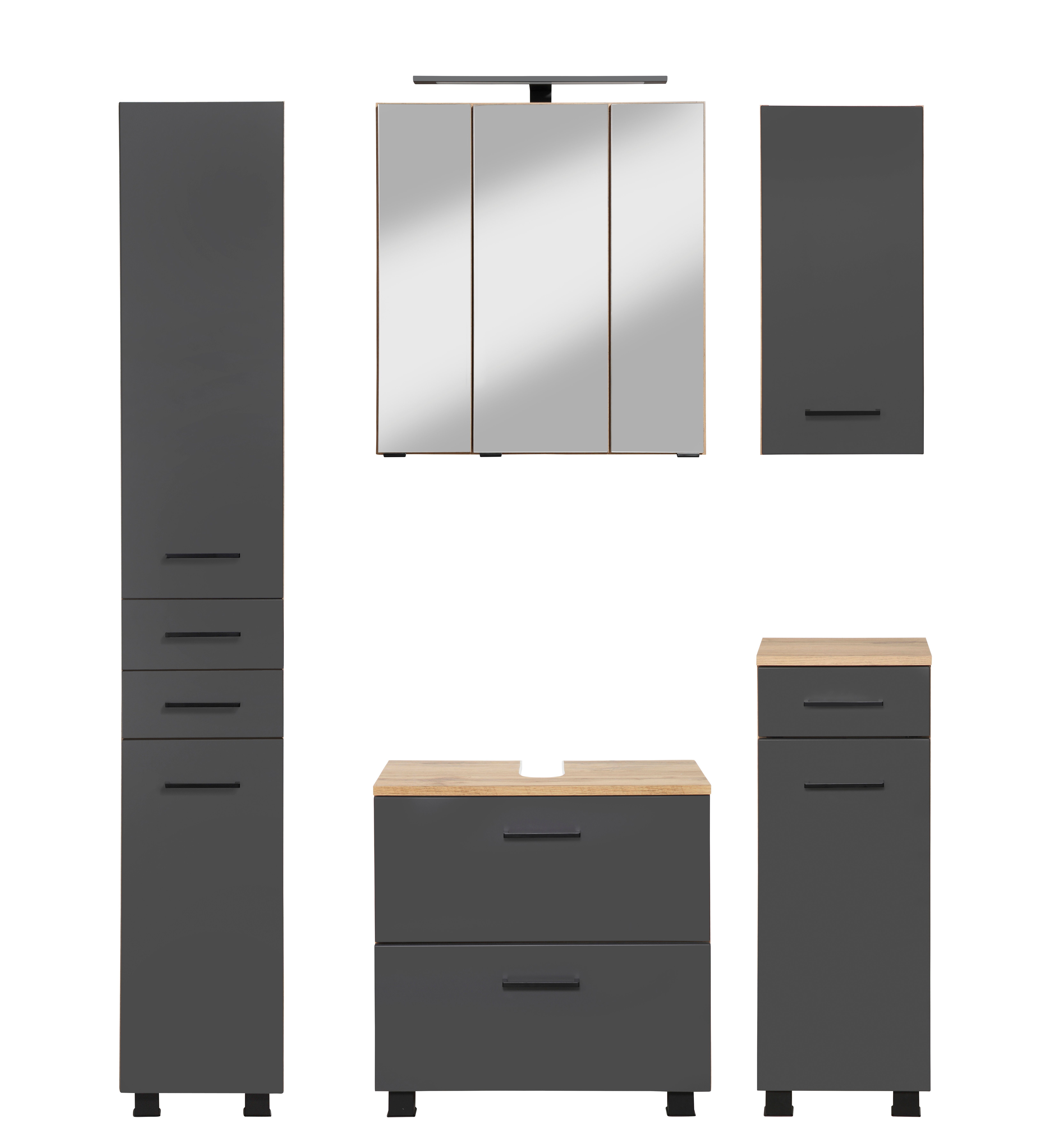 Wissenswertes | Abmessungen Hängeschrank B/H/T: ca. 30/64/20 cm Abmessungen Seitenschrank B/H/T: ca. 30/180/35 cm (ohne Möbelfüße) Abmessungen Spiegelschrank B/H/T: ca. 60/64/20 cm Abmessungen Unterbeckenschrank B/H/T: ca. 60/54/35 cm (ohne Möbelfüße) Abmessungen Unterschrank B/H/T: ca. 30/79/35 cm (ohne Möbelfüße) Ausschnittmaße Siphon B/T: ca 8/19,5 cm |