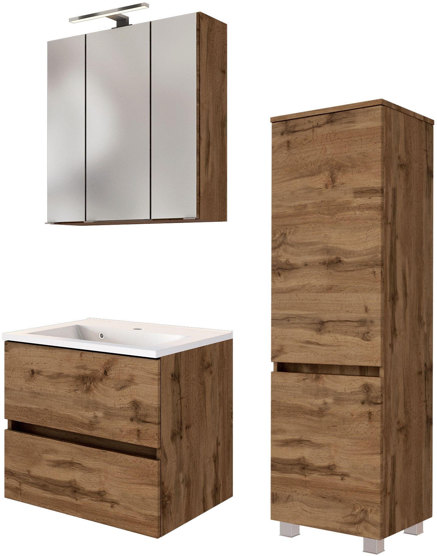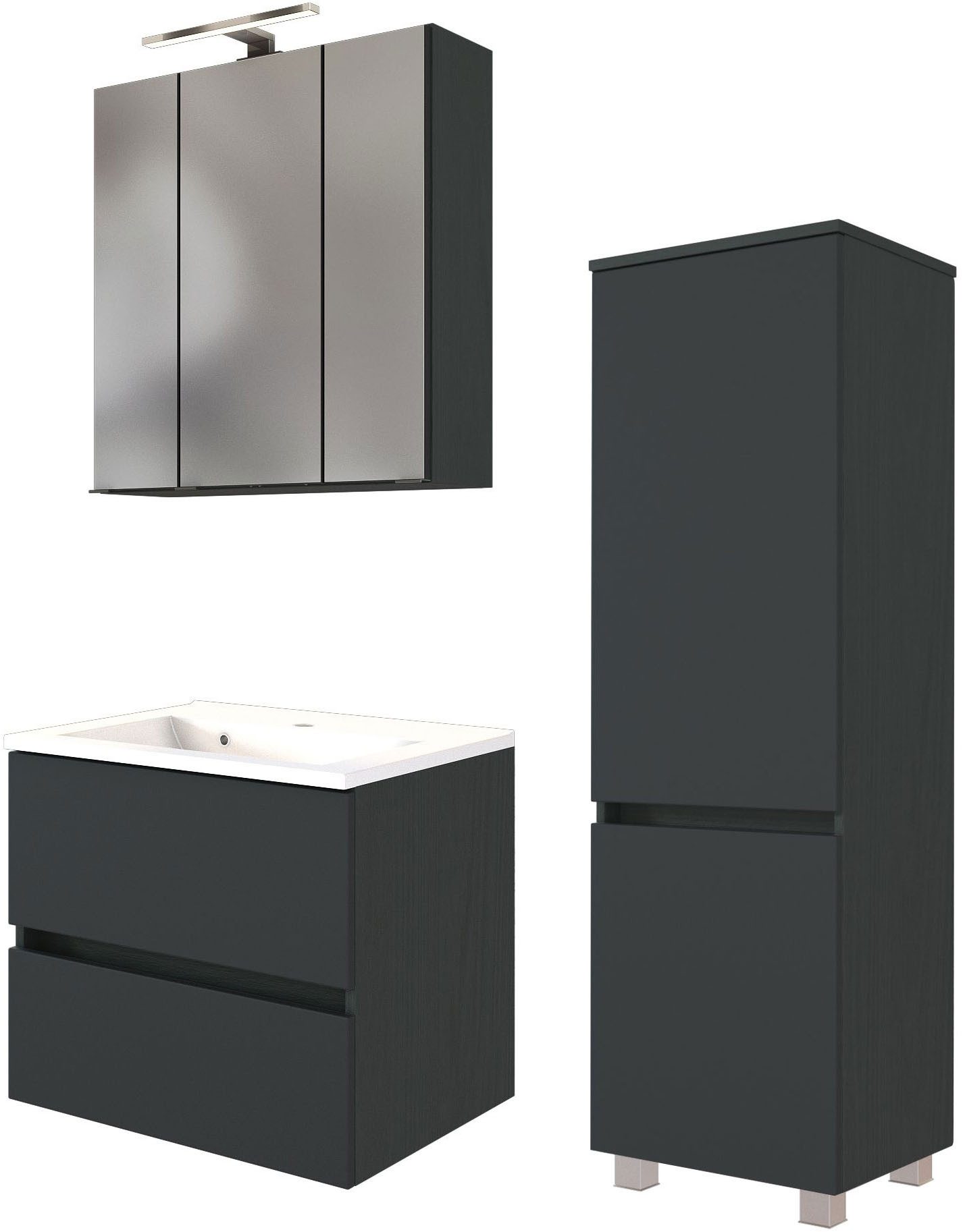 Ausführung | Set 1 3tlg.: Waschtisch 60 cm breit, Spiegelschrank 60 cm breit, Midischrank |