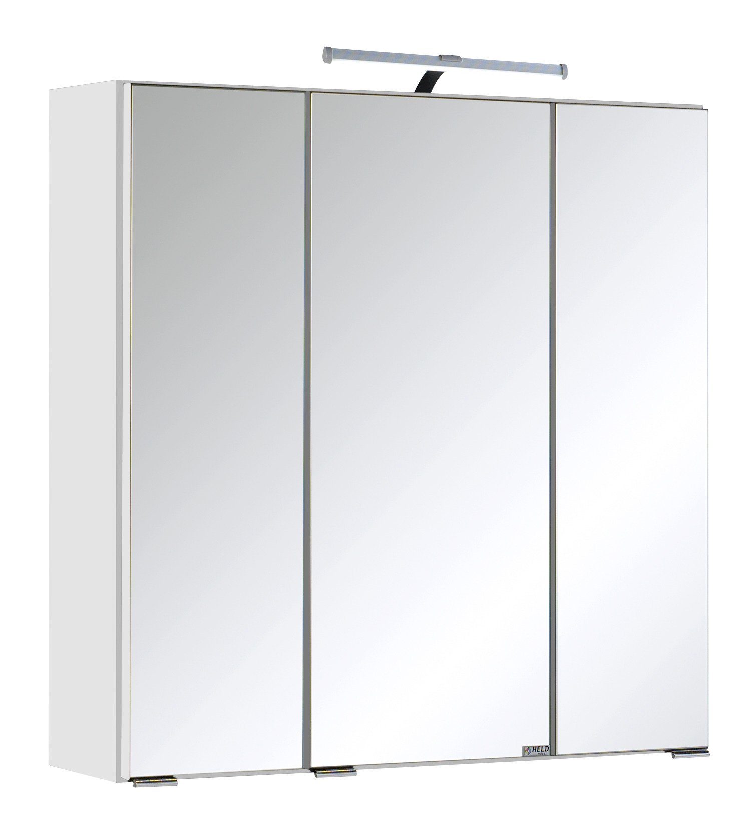 Badmöbelserie »Cardiff«. Klassisch in Design und Dekor. Korpus aus melaminharzbeschichteter Spanplatte in jeweils 3 Farben. Softclose-Funktion für Türen und Auszüge. Die LED-Beleuchtung am 3D-Spiegel ist inklusive. Auszüge mit Metallzarge. Все Möbel zur Wandmontage. Zerlegte Badmöbel inklusive Aufbauanleitung. Lieferung ohne Dekoration. Made in Germany.