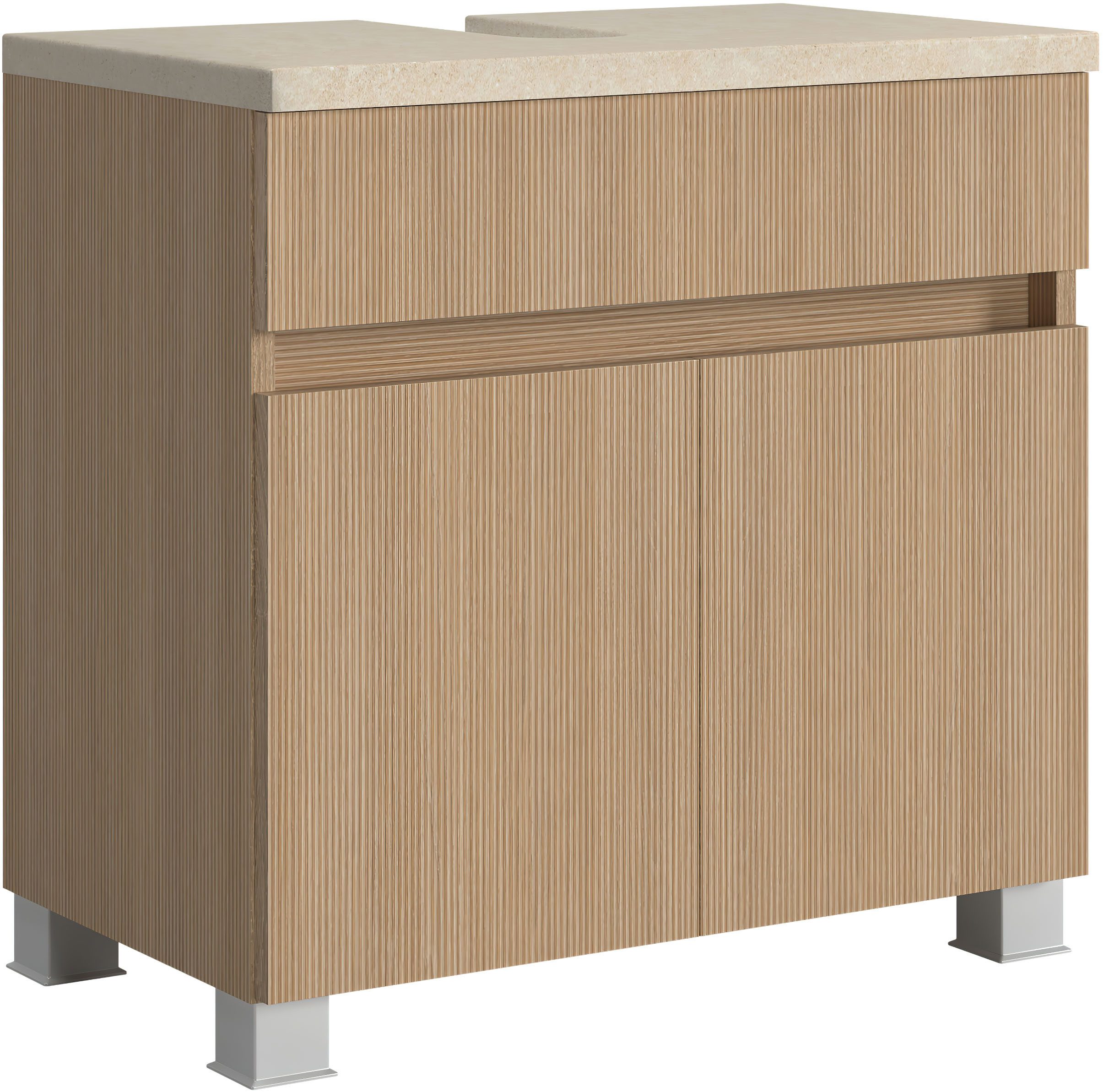 Die praktische Lösung für dein Badezimmer: der Waschbeckenunterschrank »EIXO, 2 Türen, 1 feste Blende, Siphonausschnitt BxT: ca. 81x195 mm« von welltime.