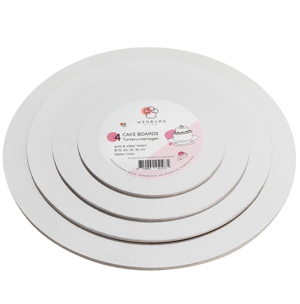 Lieferumfang | 4x Wenburg Tortenplatten gold/silber (15 cm/20 cm/25 cm/30 cm) |