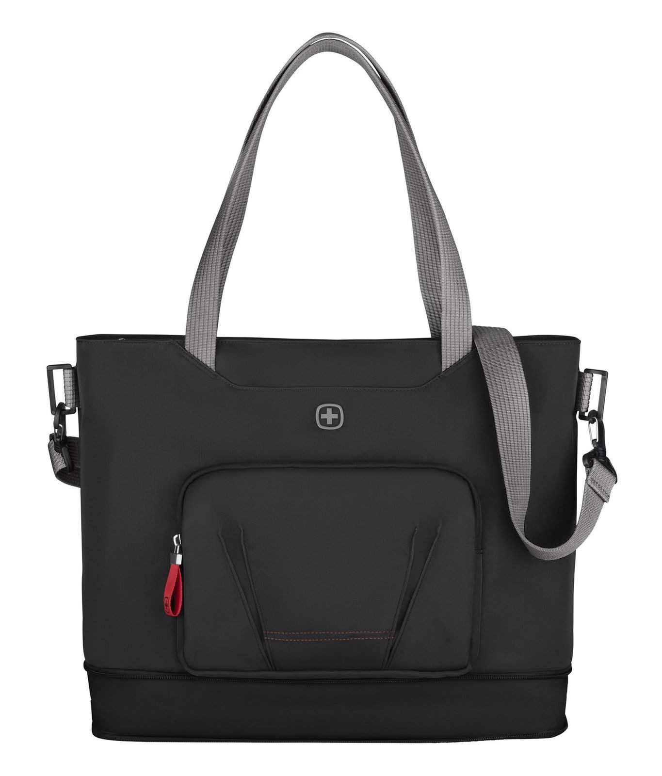Werden Sie spielend leicht zum Durchstarter im Büro! Die neue WENGER Schultertasche unterstützt Sie auf ihrer Überholstrecke perfekt! Zwei Henkel und ein extra Schulterriemen sorgen tragetechnisch für mehr Flexibilität und ermöglichen Ihnen schnelles Transportieren Ihrer Habseligkeiten. Mit der Zipper-Öffnung können Sie mit Schnelligkeit punkten. Außerdem wird Ihr Styling durch die elegante Tasche nochmals aufgewertet. Das Tolle der Laptoptasche ist zudem, dass sie erweiterbar ist. Somit haben Sie jederzeit einen Puffer, sollte mal etwas mehr in die Tasche hinein. Außenriemen sind ideal um eine Jacke oder die Yogamatte unterzubringen. Wenn Sie so richtig durchstarten möchten, dann sollten Sie das gemeinsam mit der WENGER Motion Deluxe 15.6'' Laptop Tote tun!