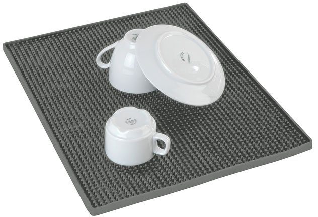 Die robuste Abtropfmatte aus Kunststoff sorgt mit ihren zahlreichen Noppen für einen sicheren Halt aller hochwertigen Gläser, Tassen und Teller. Durch die Noppenstruktur kann das überschüssige Spülwasser problemlos ablaufen und das Geschirr trocknet schneller. Die extra große Multifunktionsmatte verhindert unschöne Kratzer auf der Spüle und ist sanft zum Geschirr. Zudem vergrößert die praktische Geschirrablage aus dem Gastronomie-Bereich optimal Ihre Spülfläche. Die rutschfeste Matte ist der ideale Helfer bei der Spülarbeit, die Arbeitsfläche wird zuverlässig vor Wasser geschützt und bei Bedarf ist das Pad einfach zu reinigen.