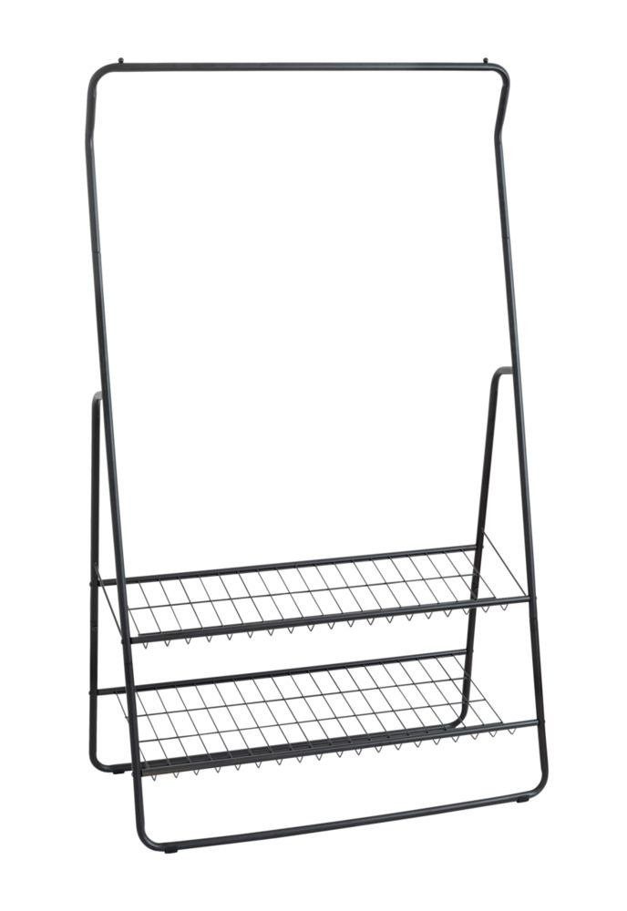 .Der Kleiderbügel mit Regalen SHIVA ist ein Produkt der bekannten Marke WENKO. Es wurde aus strapazierfähigem und verformungsbeständigem Metall gefertigt. Der Kleiderbügel hat eine leiterartige Form mit zwei durchbrochenen Regalen und einer Stange zum Aufhängen von Kleiderbügeln. Es eignet sich perfekt zum Aufhängen von Hemden oder Jacken