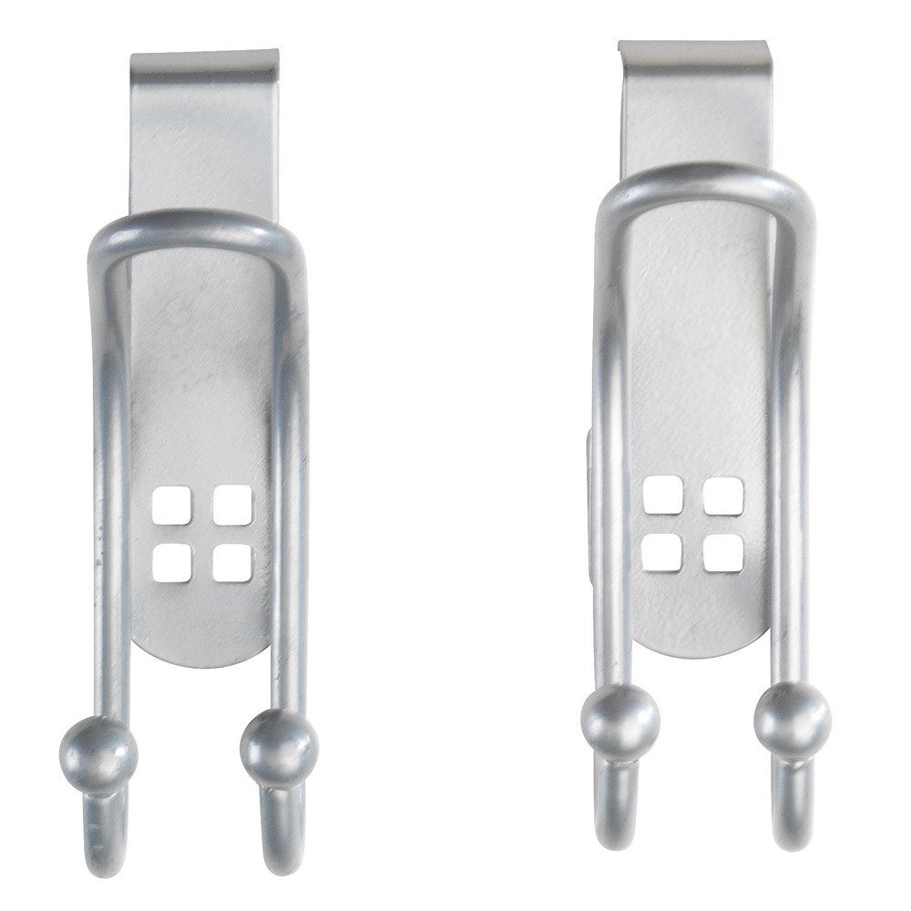 Ein Set aus zwei Metallhaken für Türen ist eine funktionale Lösung für jedes Badezimmer. Es spart Platz und organisiert den Raum auf diese Weise. Funktioniert gut zum Aufhängen von Handtüchern, Bademänteln, Unterwäsche und anderen Teilen unserer Garderobe. Design passt sicherlich in die Einrichtung jedes Badezimmers. Enthält 4 einzelne Haken. Es verursacht keine Probleme mit dem Спрятать der Tür. Es kratzt nicht an der Oberfläche.