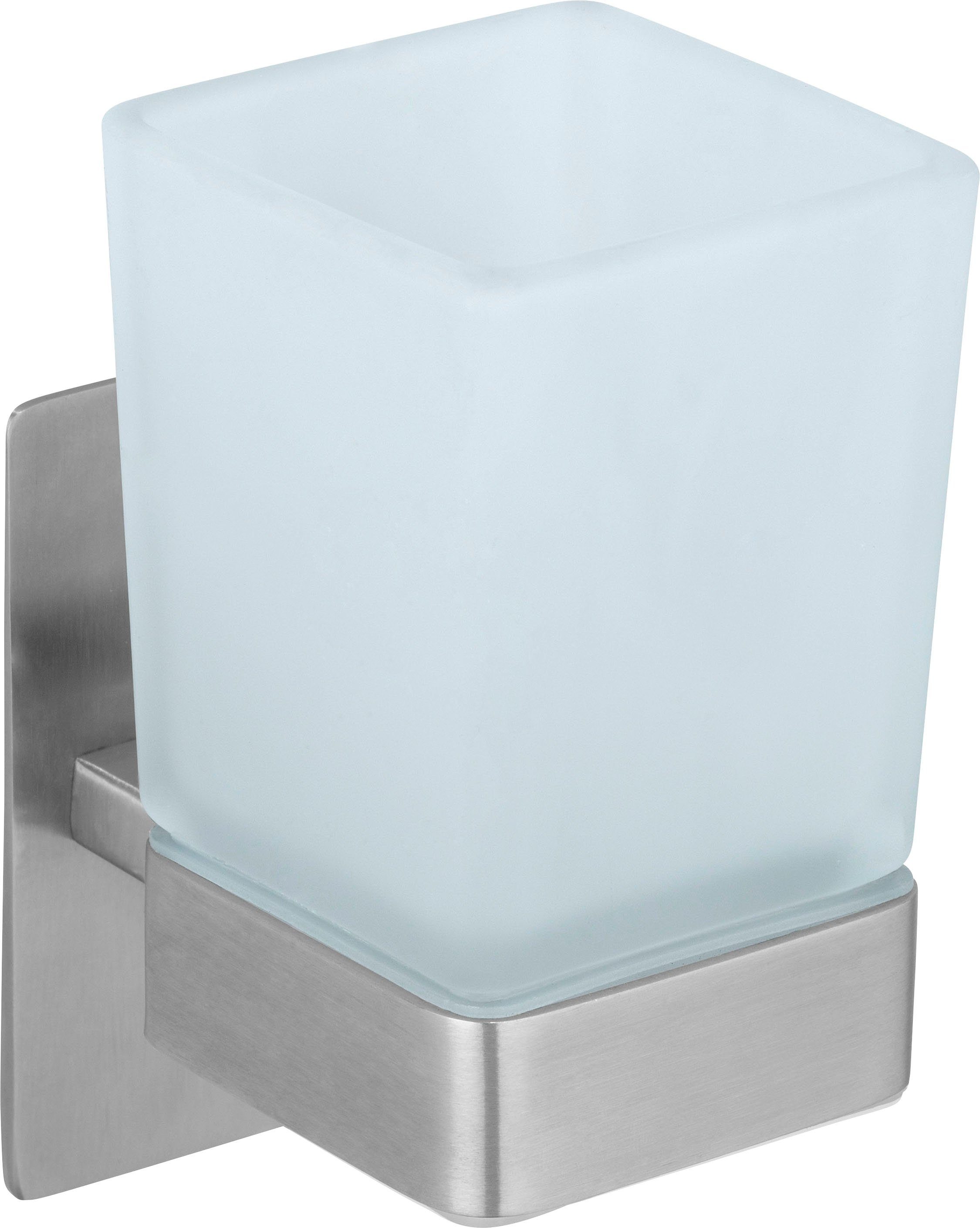 Eckiger Zahnputzbecher aus Glas mit Wandhalterung, matt