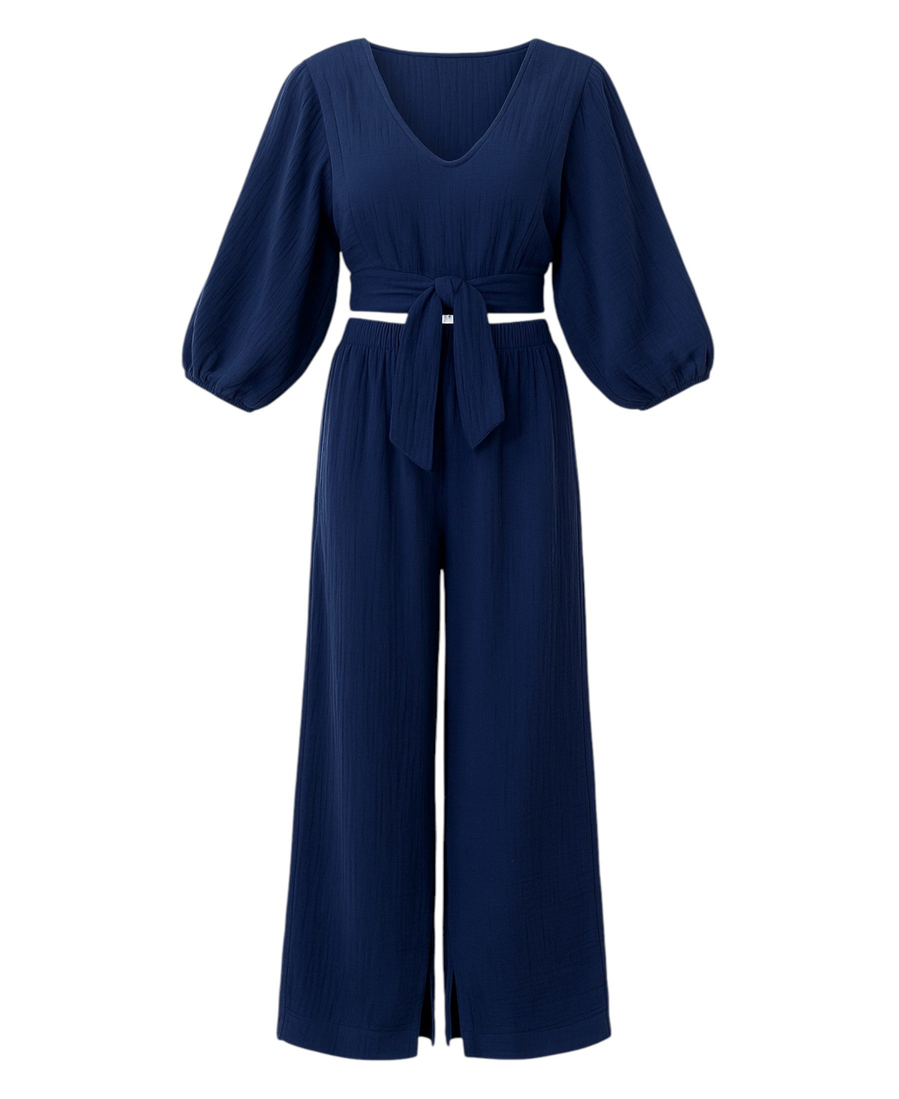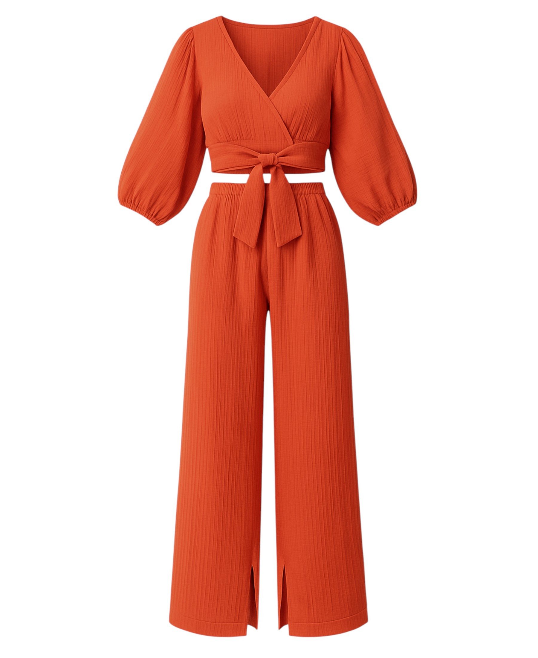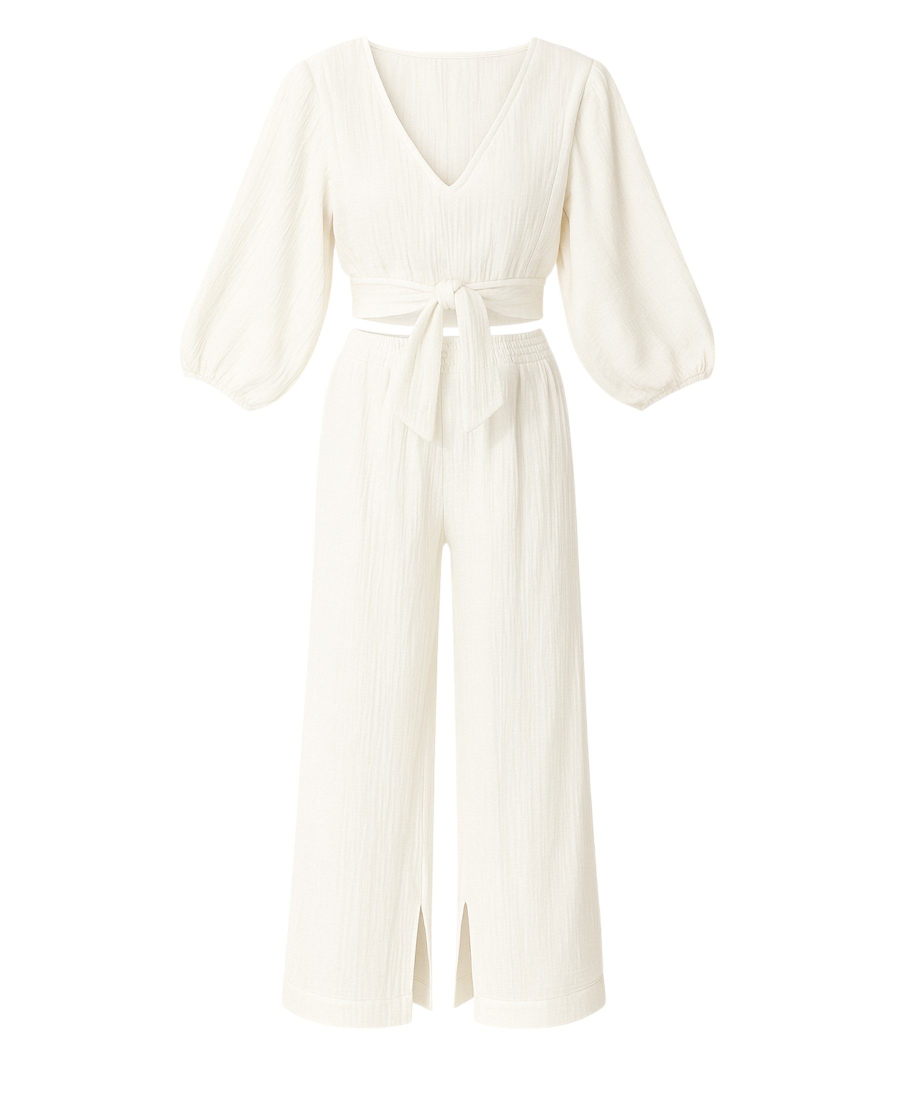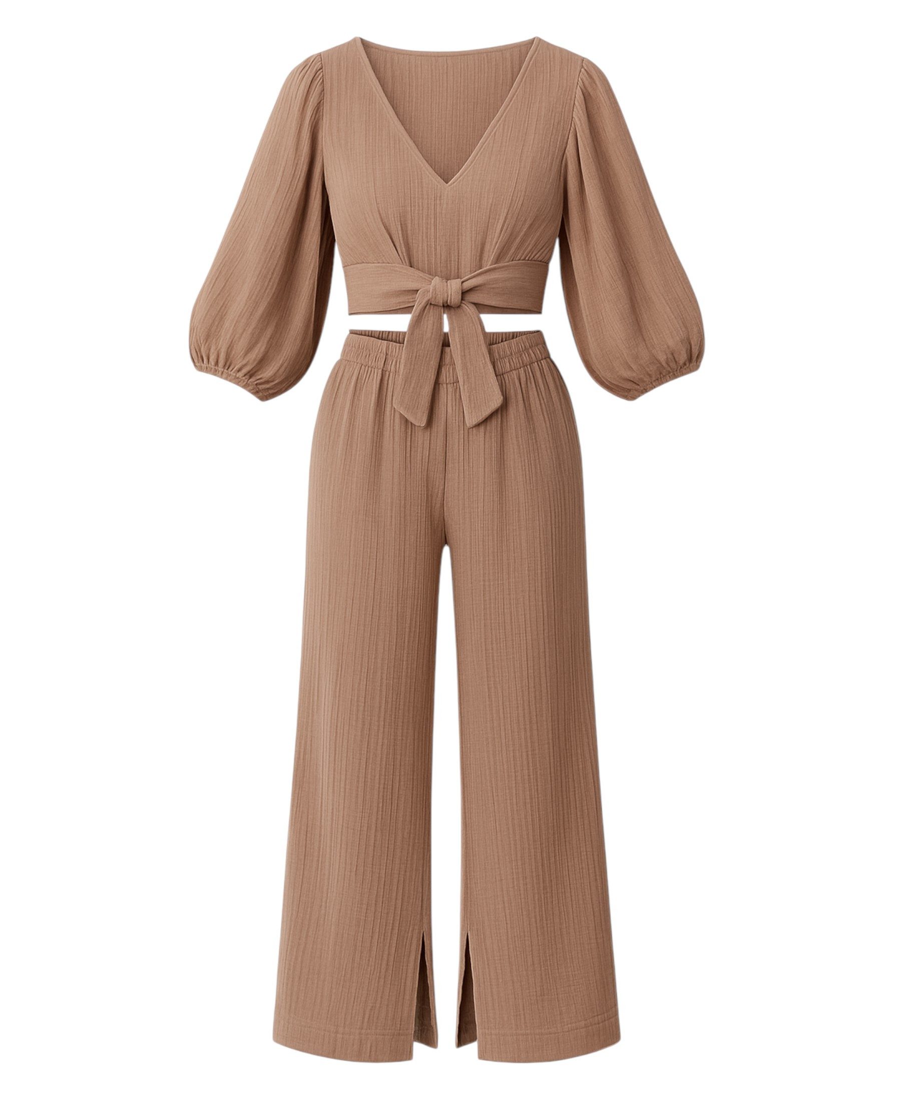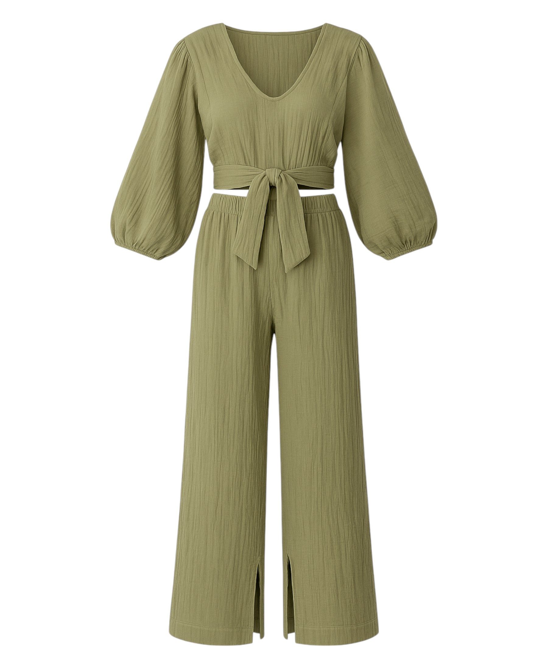 Verschlussdetails | Hose mit elastischem Bund, Top wird vorne geknotet |