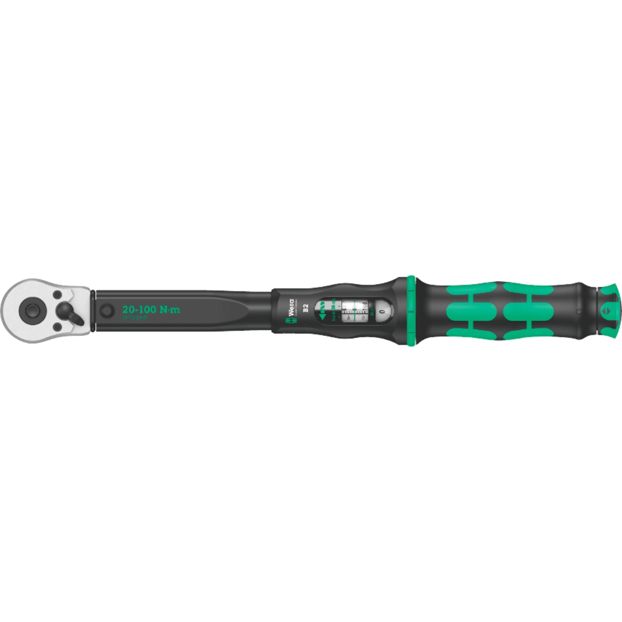 Abtrieb 3/8" Der Click-Torque B 2 ist ein Klick-Drehmomentschlüssel im unverkennbaren Wera Design in sehr robuster Ausführung. Er überzeugt mit hoher Genauigkeit gemäß DIN EN ISO 6789-1:2017-07. Der Vorgabewert lässt sich einfach einstellen und sichern, und ist im Sichtfenster mit Haupt- und Feinskala leicht ablesbar. Das hör- und fühlbare Einrasten bei Erreichen der Skalenwerte erleichtert zusätzlich die sichere Einstellung des gewünschten Drehmomentwertes. Die robuste Auslösemechanik sorgt für ein deutlich hör- und fühlbares Auslösesignal bei Erreichen des eingestellten Drehmomentes. Der Click-Torque B 2 ist für Rechtsanzug vorgesehen und verfügt über eine Umschaltknarre mit 45 Zähnen.