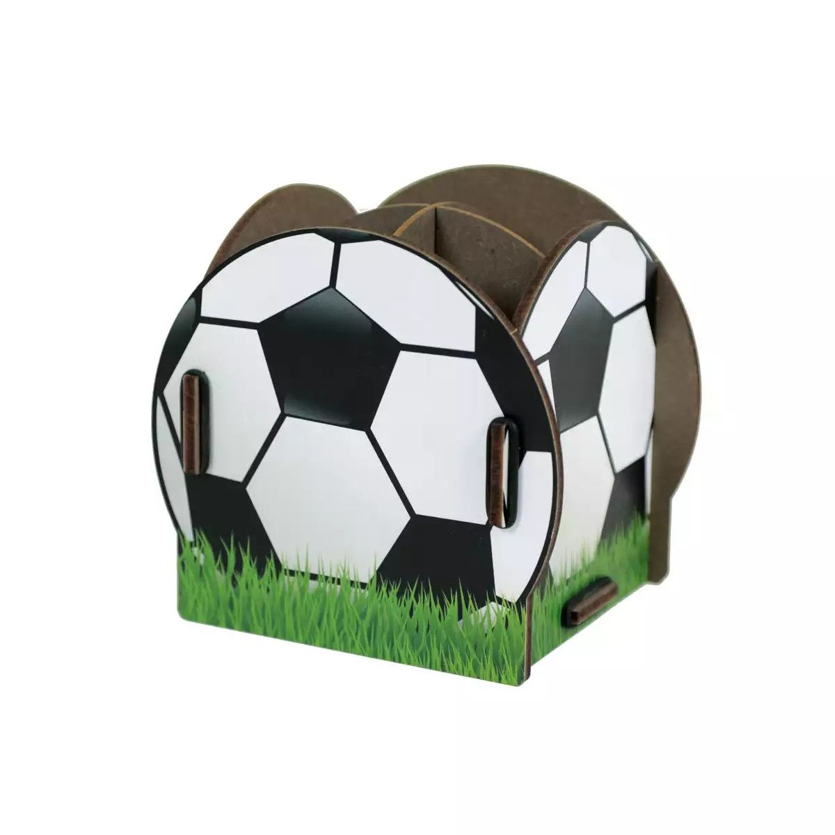 Hier kommt das passende Schreibtischzubehör für Fußballfreunde. Die kleine Stiftebox mit vier Fächern für Stifte und Schreibutensilien hat die Form eines klassischen Fußballs. Somit eignet sie sich für einen Kinderschreibtisch im Fußball-Look oder als Geschenk für richtige Fußball-Fans. Die Stiftebox Fußball produzieren wir zu 100 % in Deutschland in unserem eigenen Werk in der Lüneburger Heide.