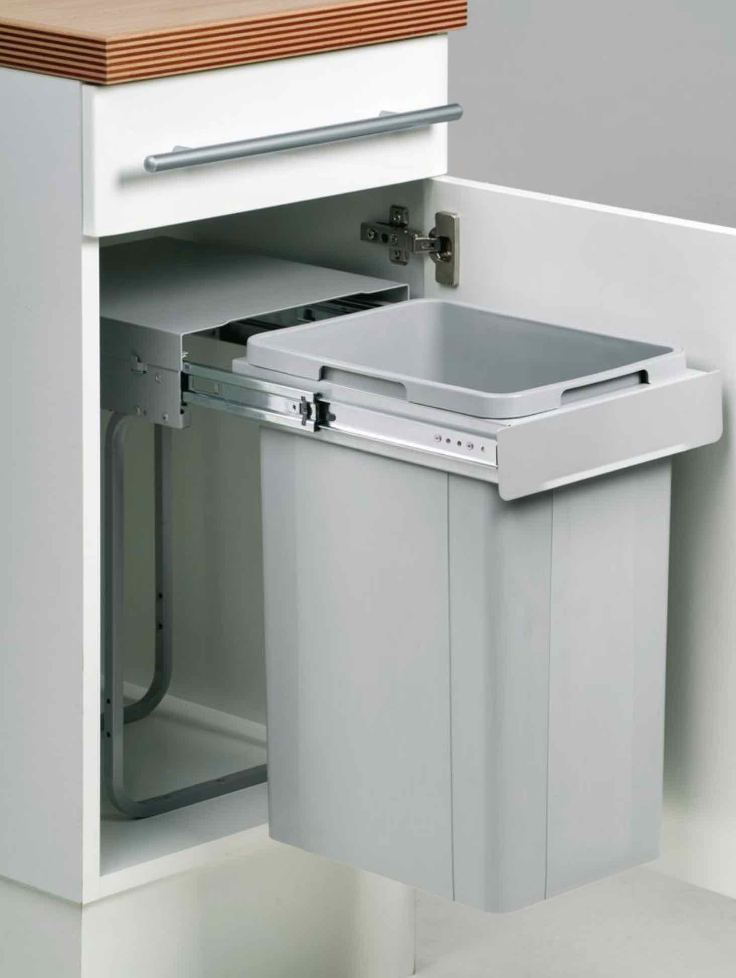 KILEAN wir sagen: Das Mülltrennsystem WESCO® Traditionline Single-Boy 485 K/300-1, alugrau ist in einer durchdachten Auszugstechnik speziell für Drehtüren konzipiert. Dem Eigenbedarf entsprechend kann das Modell mit einem Abfallvolumen von 26 oder 32 Litern erworben werden. Der Einzelbehälter ist an den Rändern mit Griffmulden ausgestattet, die das Herausheben zur Entsorgung des Mülls erleichtern. Zur Grundausstattung gehört ein Gesamtdeckel, der auf dem Gestell befestigt wird und sich zum Reinigen mühelos abnehmen lässt. Der Vollauszug mit robusten Führungsschienen ist dank der Griffleiste im Frontbereich einhändig bedienbar. Die Montage des Mülltrennungssystems erfolgt unkompliziert auf dem Schrankboden.