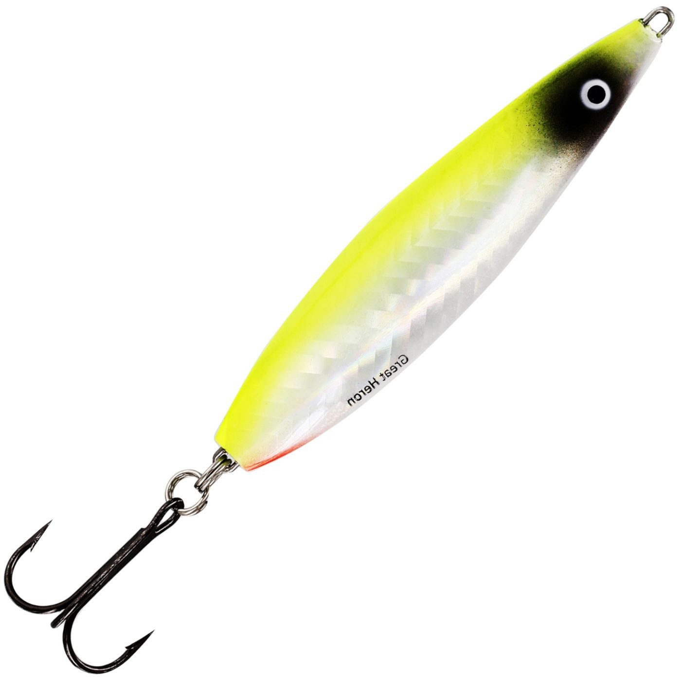 Westin Great Heron - Meerforellenblinker - Es gibt Angelbedingungen, während denen die Meerforellen kleine bis mittlere Nahrung bevorzugen und dementsprechend die Beutefische selektieren. Für diese Angelei dienen die Meerforellenköder von Westin, die mit ihrer Köderlänge einen maulgerechten Happen für die Forellen darstellen. Neben dem Meeresfischen lässt sich der Raubfischblinker auch sehr gut zum Süßwasserangeln auf Barsch, Rapfen und Hecht einsetzen. Der Great Heron Raubfischköder kann sowohl schnell als auch langsam geführt werden und gibt unabhängig von der Einholgeschwindigkeit ein sehr lebhaftes Bewegungsmuster ab. Am hinteren Teil des Kunstköders befinden sich zwei Sprengringe samt Drillingshaken, wodurch dieser im Drill mitarbeitet und dadurch die Hebelwirkung und somit die Aussteiger im Drill reduziert.