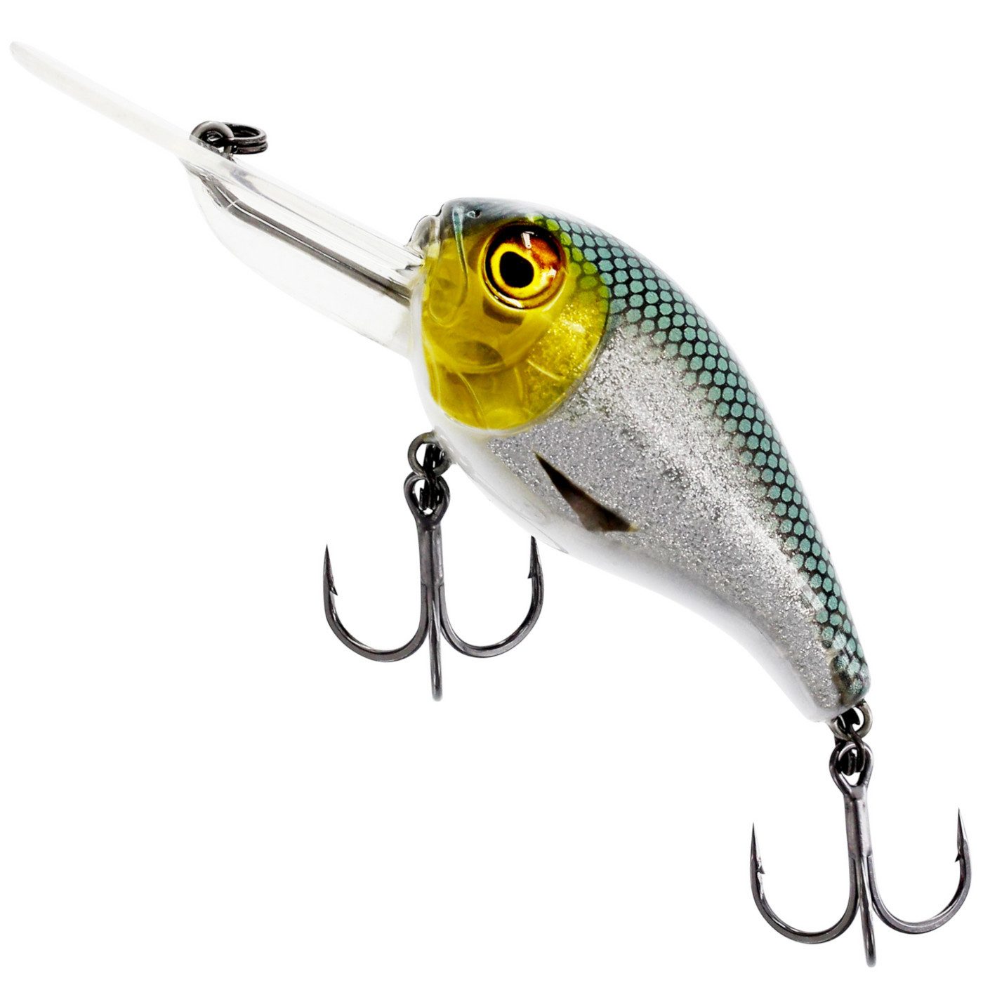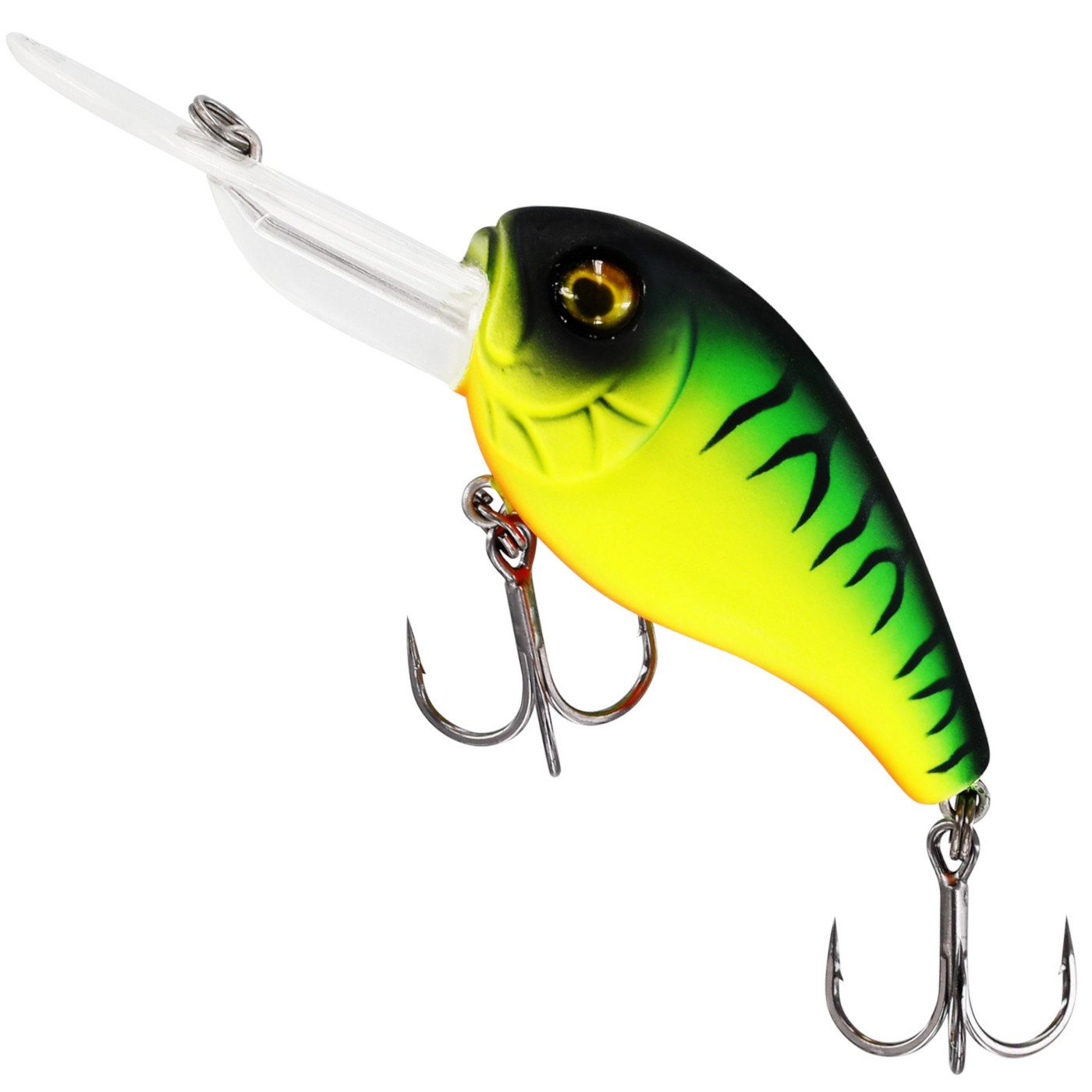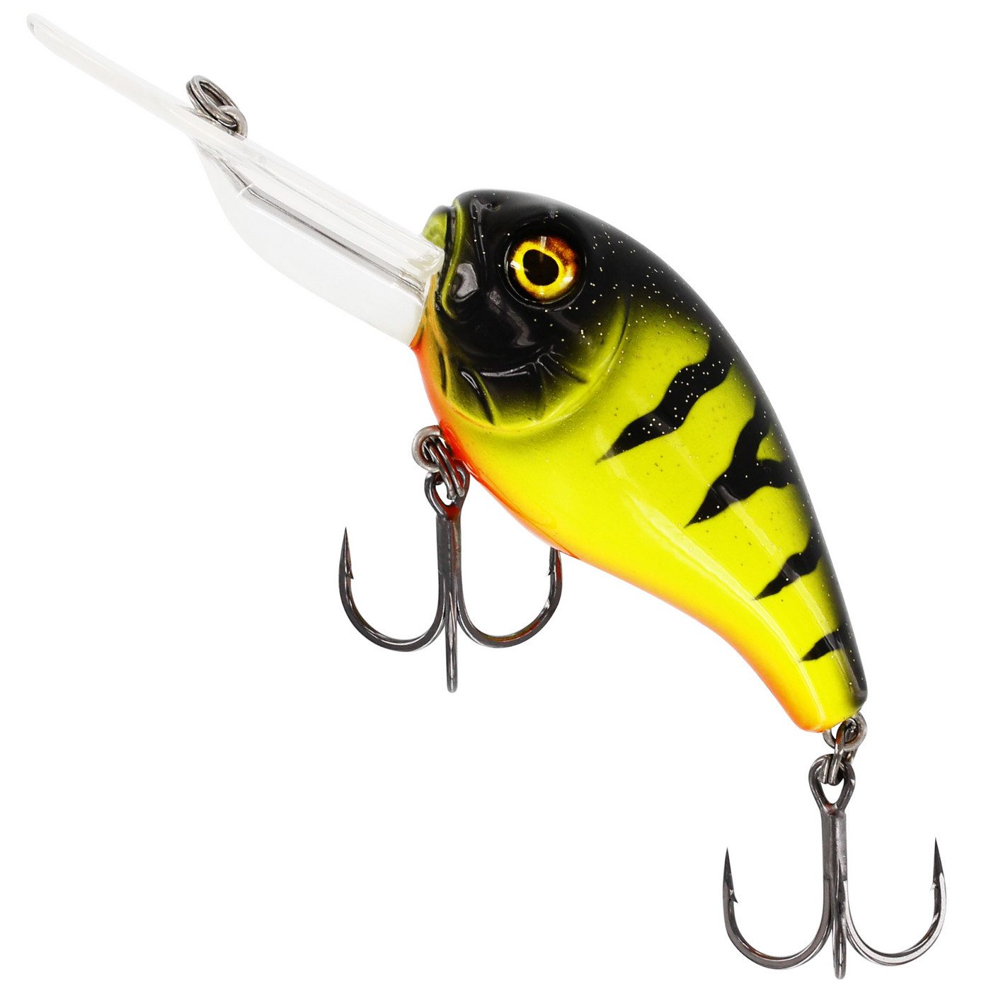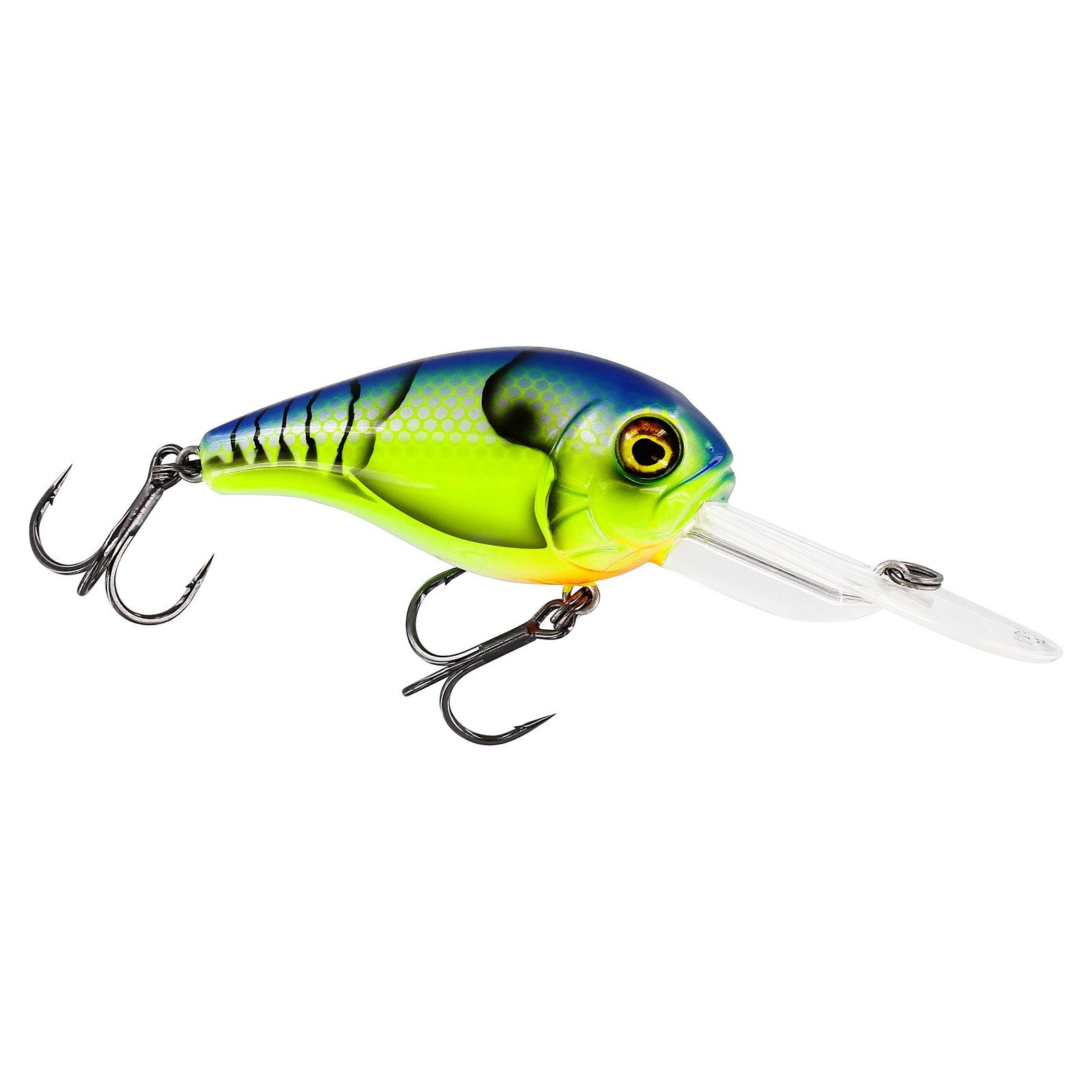 Westin MegaBite DR Crankbait 6cm 19g - Wobbler - Der Köder von Westin ist ein tief tauchender Wobbler, der zum Angeln auf Barsch, Zander, Schwarzbarsch und Hecht verwendet werden kann. Dieser Crankbait hat einen ausladenden aggressiven Lauf und eine große Tauchschaufel, die ihn schnell durch die Wassersäule nach unten bringt. Bei Spinnstopps taumelt der Köder durch seine große Körperkonstruktion mit Luftkammern im Inneren zur Oberfläche. Dies ermöglicht lange Spinnstopps, die häufig Bisse provozieren.