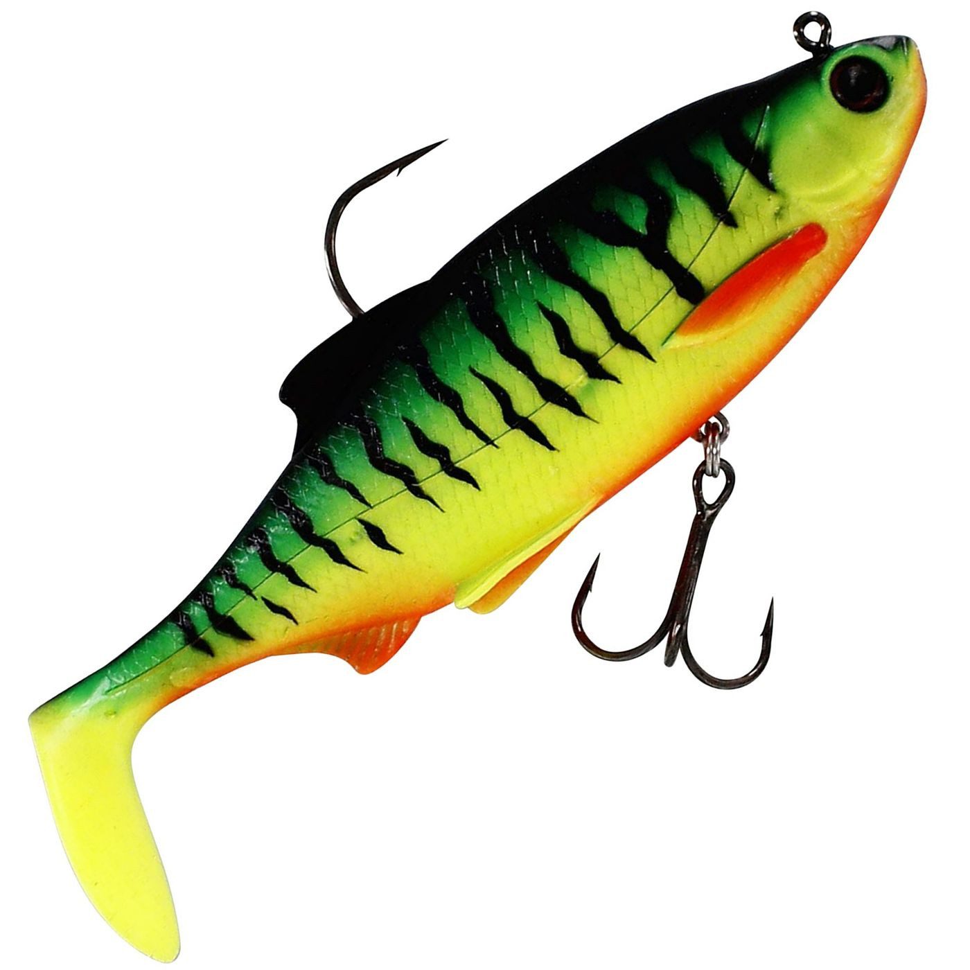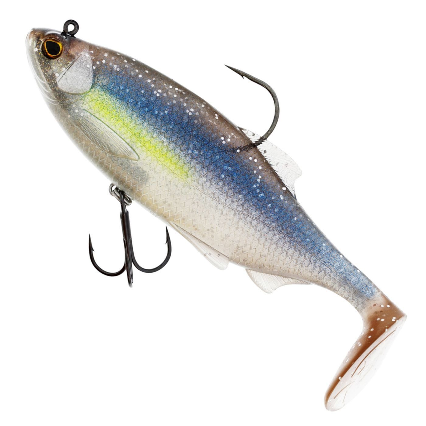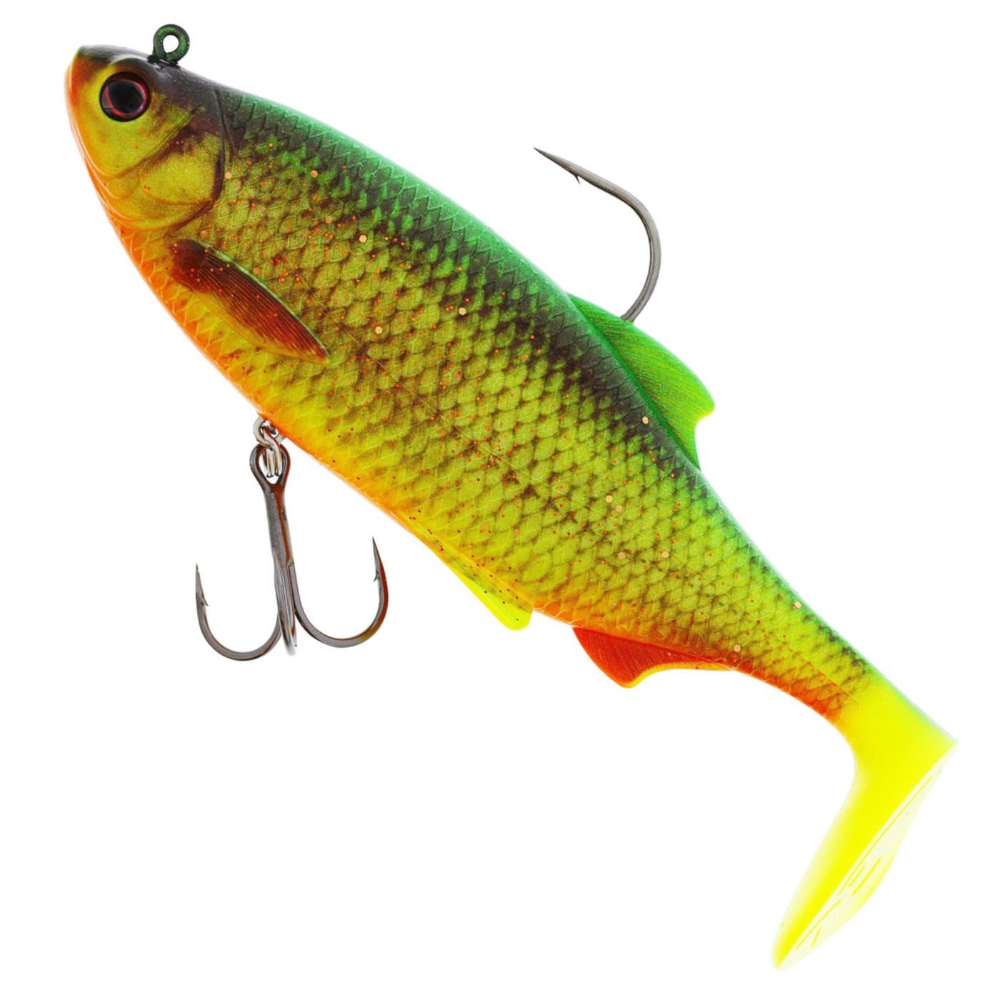 Westin Ricky the Roach RNR - Gummifisch - Der Swimbait von Westin weist eine Длина von 18cm sowie ein Gewicht von 113g auf und er ist ein toller Gummiköder zum Spinnfischen, Jiggen und Schleppangeln auf Hechte. Der Hechtköder ist mit einem kurzen Paddelschwanz ausgestattet, der ein langsames Gleiten durch das Wasser ermöglicht. Bereits bei langsamer Einholgeschwindigkeit entsteht ein toller Köderlauf mit einer schnellen und unregelmäßigen Aktion. Zudem blitzen beim Einholen die Flanken des Köders auf und die Schwimmbewegungen des Kunstköders sehen einem Beutefisch zum Verwechseln ähnlich. Die Kunstköder sind mit einem robusten und scharfen Einzelhaken sowie Drillingshaken fertig montiert und somit beim Spinnfischen direkt einsatzbereit.
