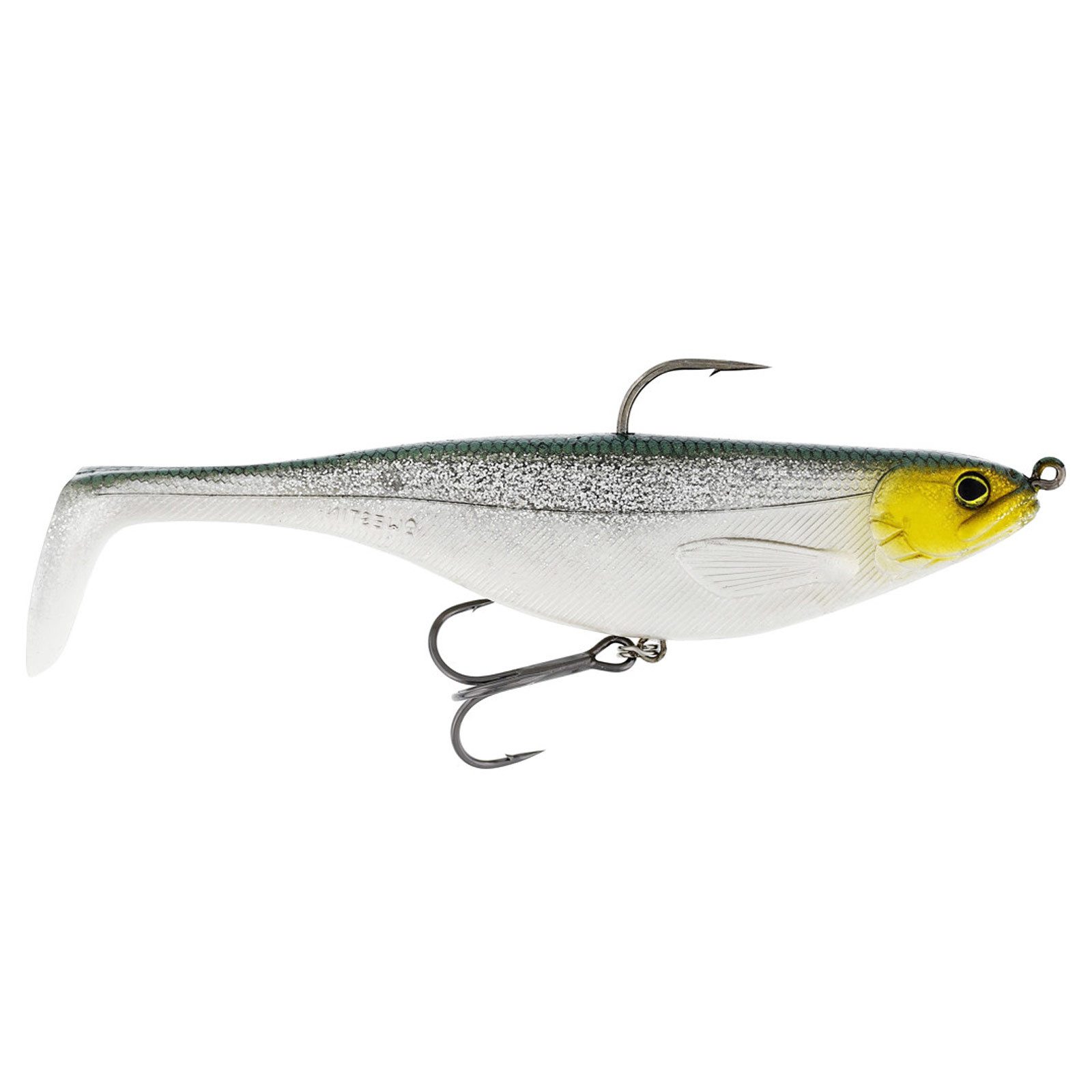 Westin Shadteez R 'N R 16cm 55g Sinking - Der ShadTeez zählt wahrscheinlich zu einer der bekanntesten Gummifische auf dem Markt und ist jetzt als "Ready to Fish" Version noch einfacher zu fischen. Das starke und robuste innenliegende, bleifreie Gewicht erzeugt ein realistisches Profil mit der beliebten rollenden Aktion. Montiere den Köder einfach an deinem Vorfach, werfe ihn aus, halte die Schnur straff und der ShadTeez fängt an zu laufen. Hole ihn mit gleichmäßigem Tempo ein und lasse die perfekte Schwimmaktion die Arbeit erledigen. In tieferen Bereichen kannst du ihn auch auf den Grund sinken lassen und dann langsam einkurbeln, um ihn unten zu halten. Wenn du in verkrauteten Gebieten oder in der Nähe von Strukturen angeln willst, empfehlen wir dir den Bauchdrilling zu entfernen, um weniger Hängergefahr zu haben.