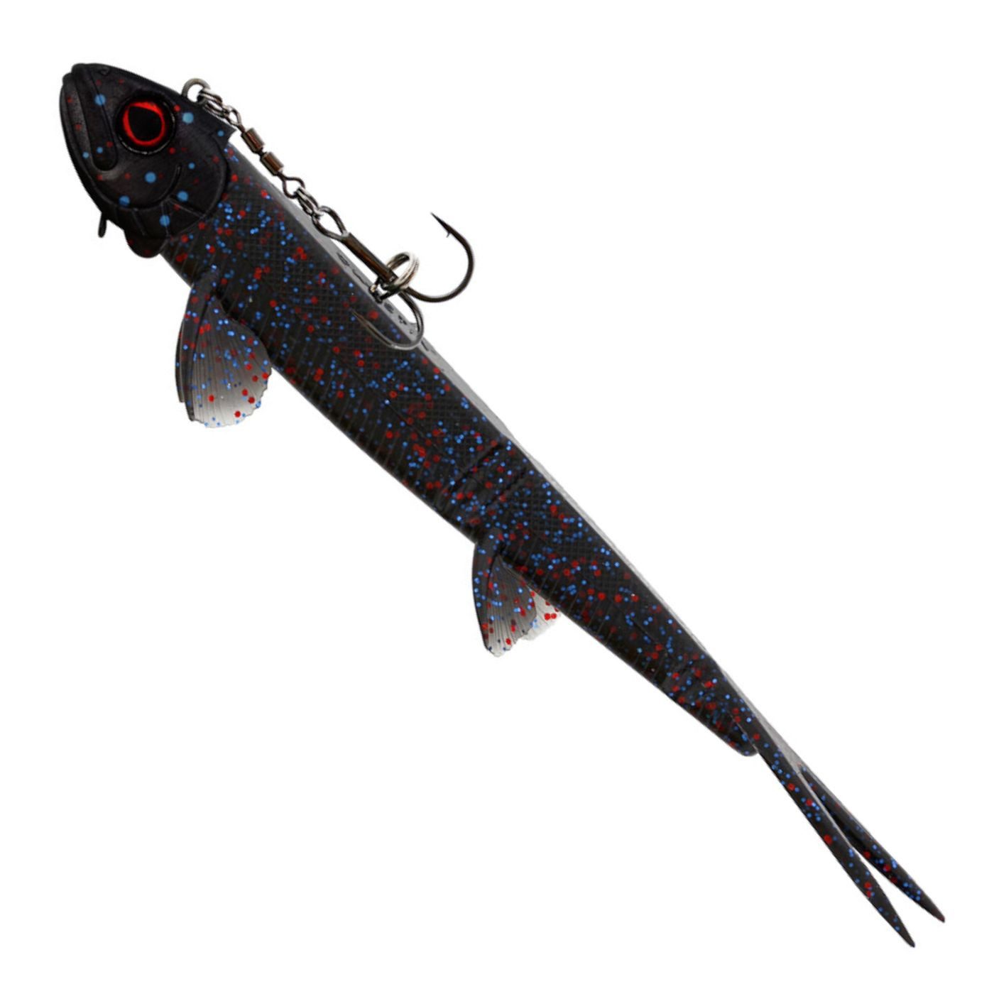 Westin Twinteez Pelagic V-Tail R 'N R 21cm 70g - Basierend auf dem TwinTeez, bringt der TwinTeez Pelagic eine neue Dimension in das pelagische Raubfischangeln. Die verführende Form und flatternden Flossen formen eine realistische Silhouette, welcher die großen Räuber nicht widerstehen können. Bereits bei kleinsten Bewegungen fangen die Flossen verführerisch an zu spielen, genau wie bei einem echten Beutefisch. Dank der beiden verbundenen Segmente im unteren Rücken und des großen V-Schwanzes erzeugen selbst kleinste Bewegungen schon eine verlockende Aktion. Westin empfiehlt, diesen Köder mit leichtem Wackeln und Zucken zu präsentieren. An schwierigen, stark überfischten Gewässern kann auch nur eine geringere Bewegung des Köders zum Erfolg führen. Wenn kapitale Fische dein Ziel sind, ist der TwinTeez Pelagic genau die richtige Wahl! Dieser Köder ist "Rigged and Ready", also aus der Verpackung raus bereit gefischt zu werden, indem er mit dem ShadTeez ScrewIn Kopf und einem speziellen Stinger für eine möglichst realistische Präsentation versehen ist. Für zickige Fische empfiehlt der Hersteller die Montage eines zusätzlichen Stingers.