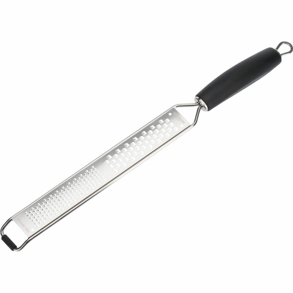 Die hochwertige Profi-Handreibe »Technicus-Pro« eignet sich zur einfachen und schnellen Herstellung von Zitrusfrüchten-Abrieb sowie von feinen und mittleren Raspeln aus Obst, Schokolade oder Gewürzen. Die speziell geätzten und daher besonders scharffen und langlebigen Edelstahlklingen sorgen dafür, dass Früchte und Gemüse sauber geschnitten werden. Somit wird ein Zerdrücken oder Zerquetschen vermieden und das volle Aroma kann sich entfalten. Der rutschfeste Fuß und der abgerundete Griff aus hochwertigem Kunststoff bieten Ihnen einen optimalen halt.